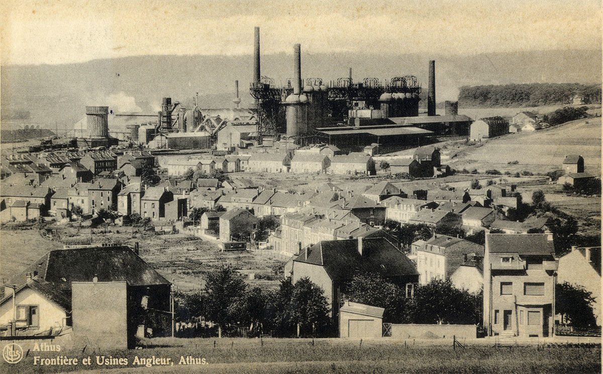 Postkaart met zicht op de hoogovensite in Athus, 1947. Collectie IHOES (Seraing)