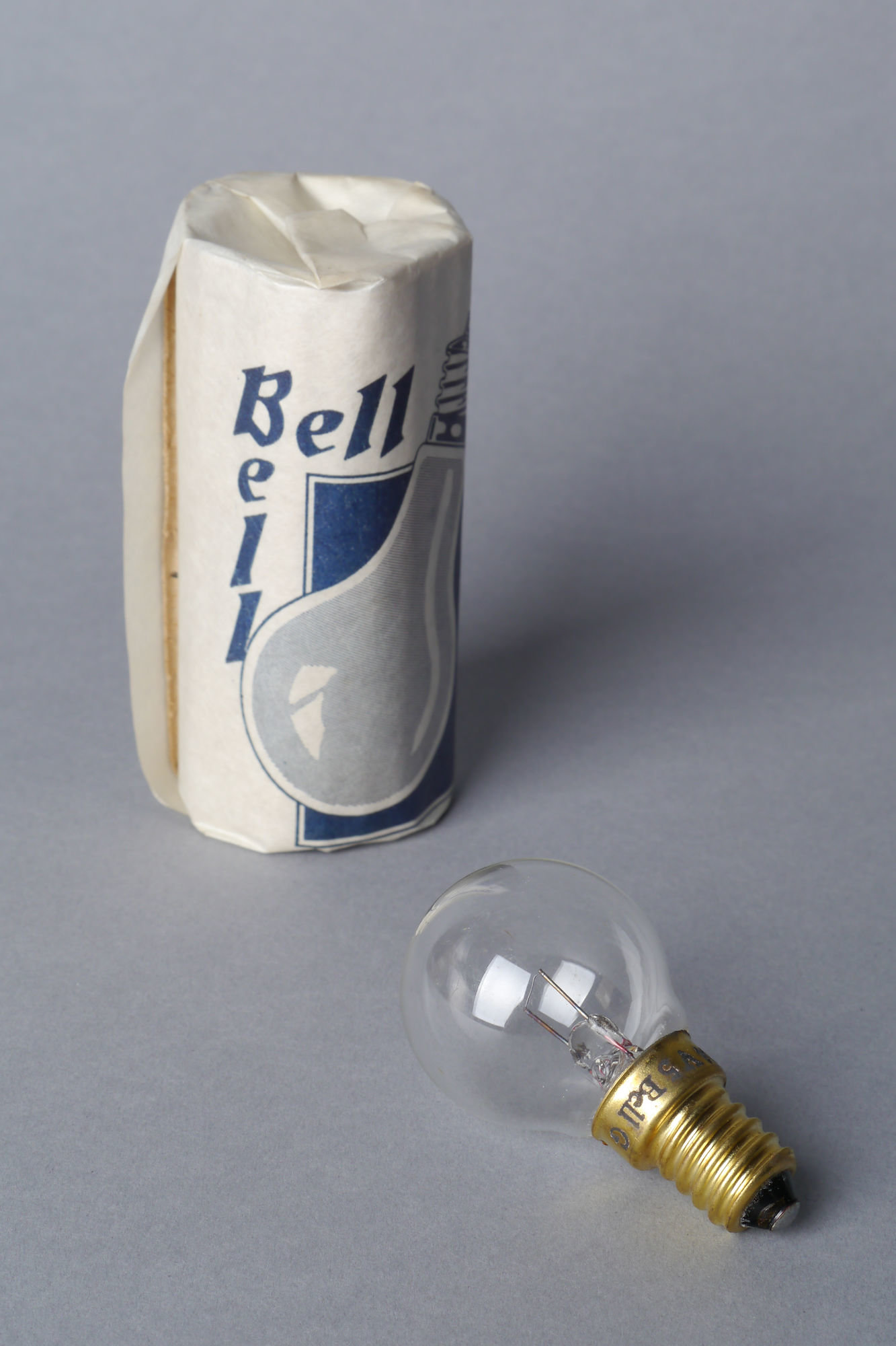 - opschriften: EEN PRODUKT DER Bell Telephone Mfg. C° NV / ANTWERPEN / MADE IN BELGIUM // 24 V 5 W Cl. E.M. Boules