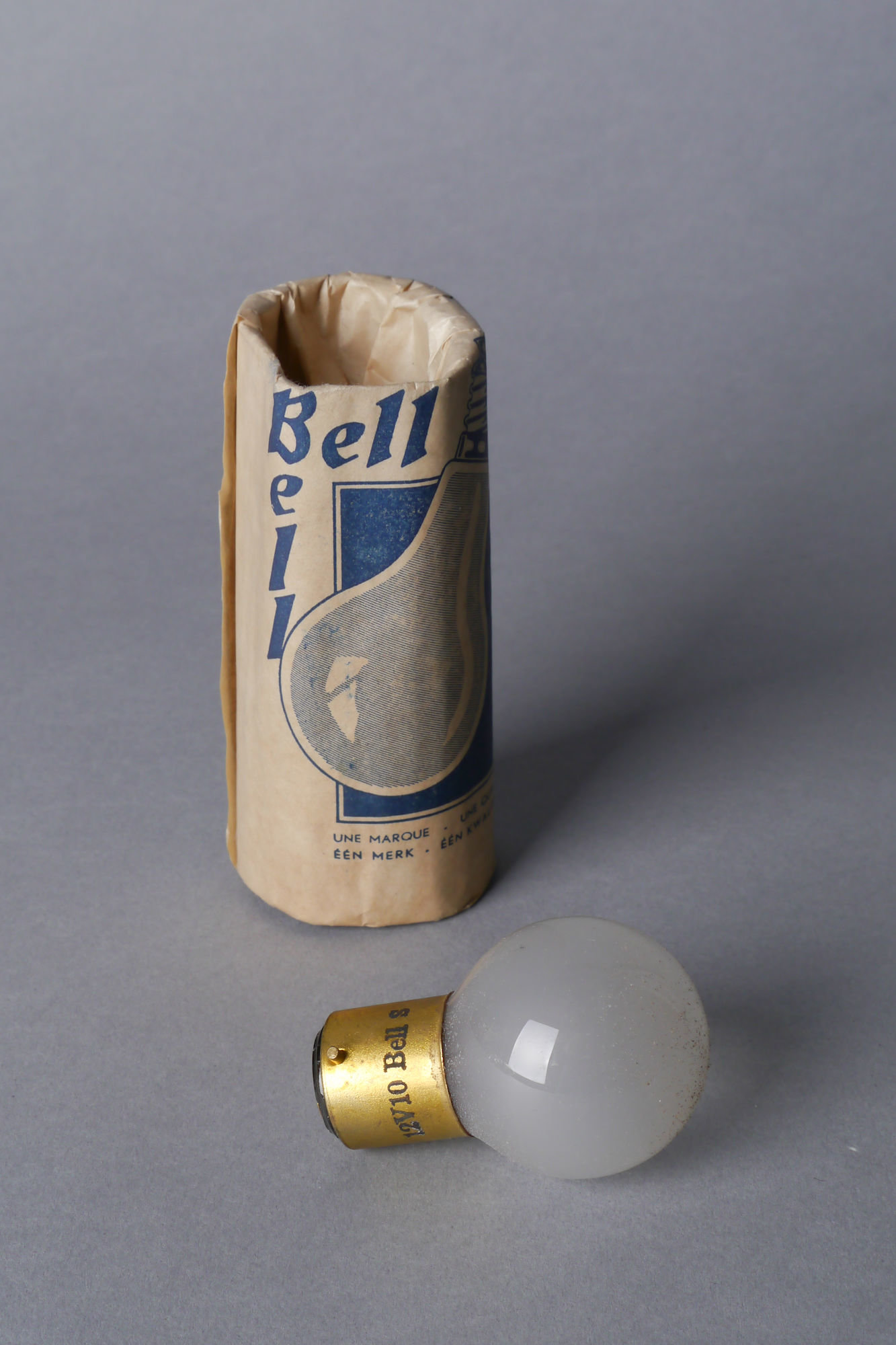 - opschriften: EEN PRODUKT DER Bell Telephone Mfg. C° NV / ANTWERPEN / Made in Belgium // 12 V 10 W int. SW Boule