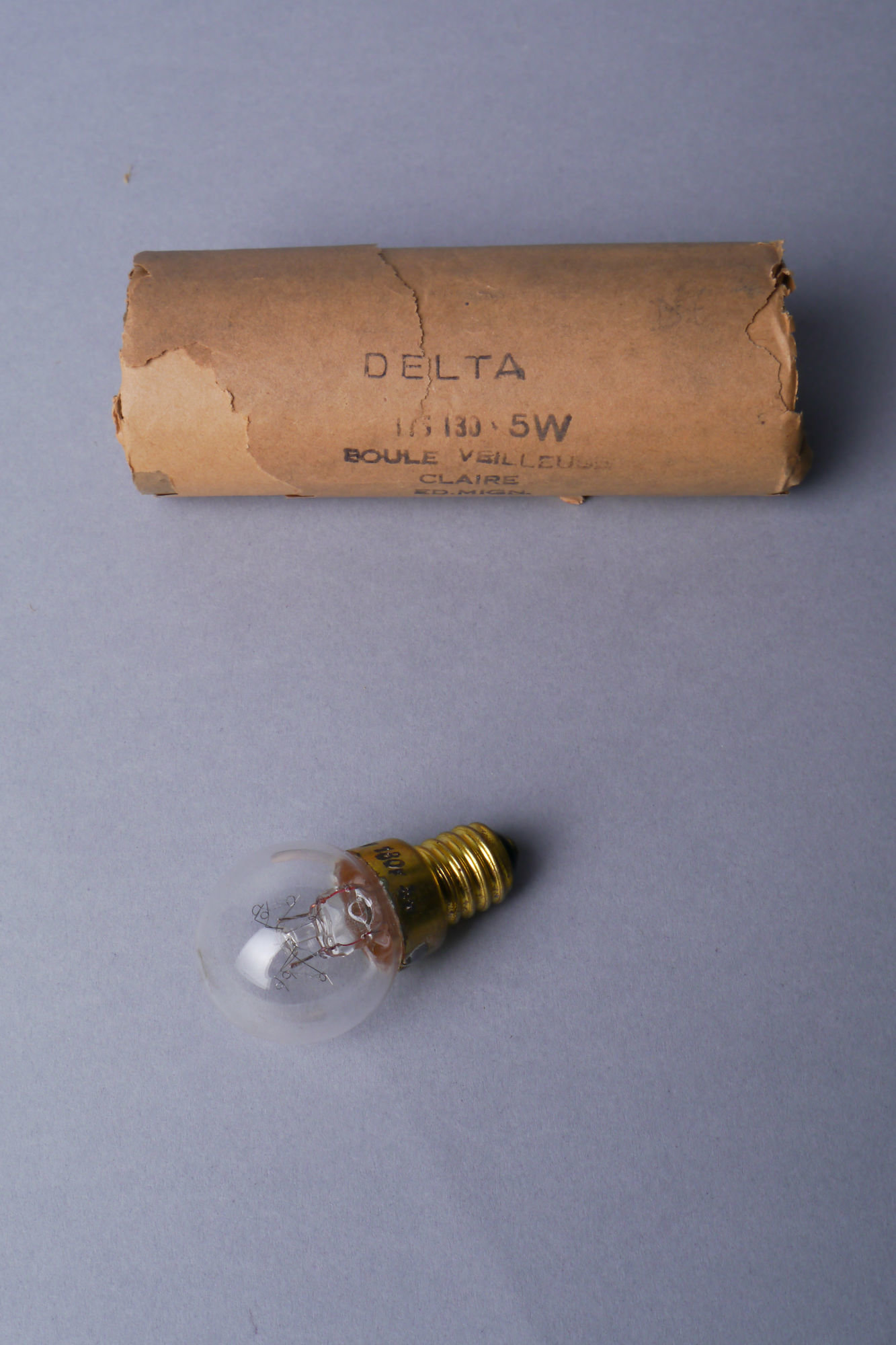 - opschriften: DELTA / 115 130 5W / BOULE VEILLEUSE / CLAIRE / ED. MIGN.