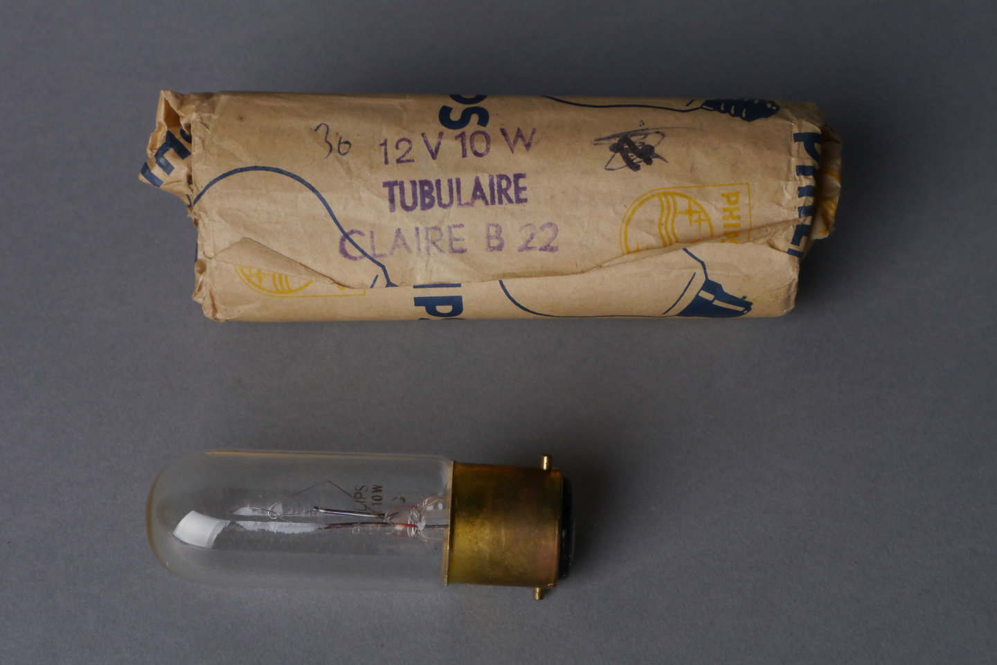 - opschriften: 12 V 10 W / TUBULAIRE / CLAIRE B 22