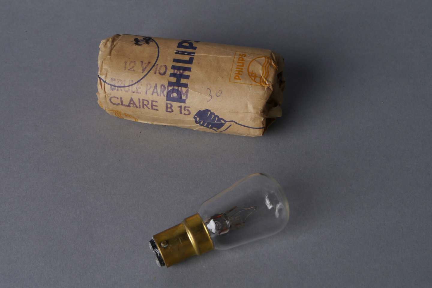 - opschriften: 12 V 10 W / BRULE PARFUM / CLAIRE B 15
