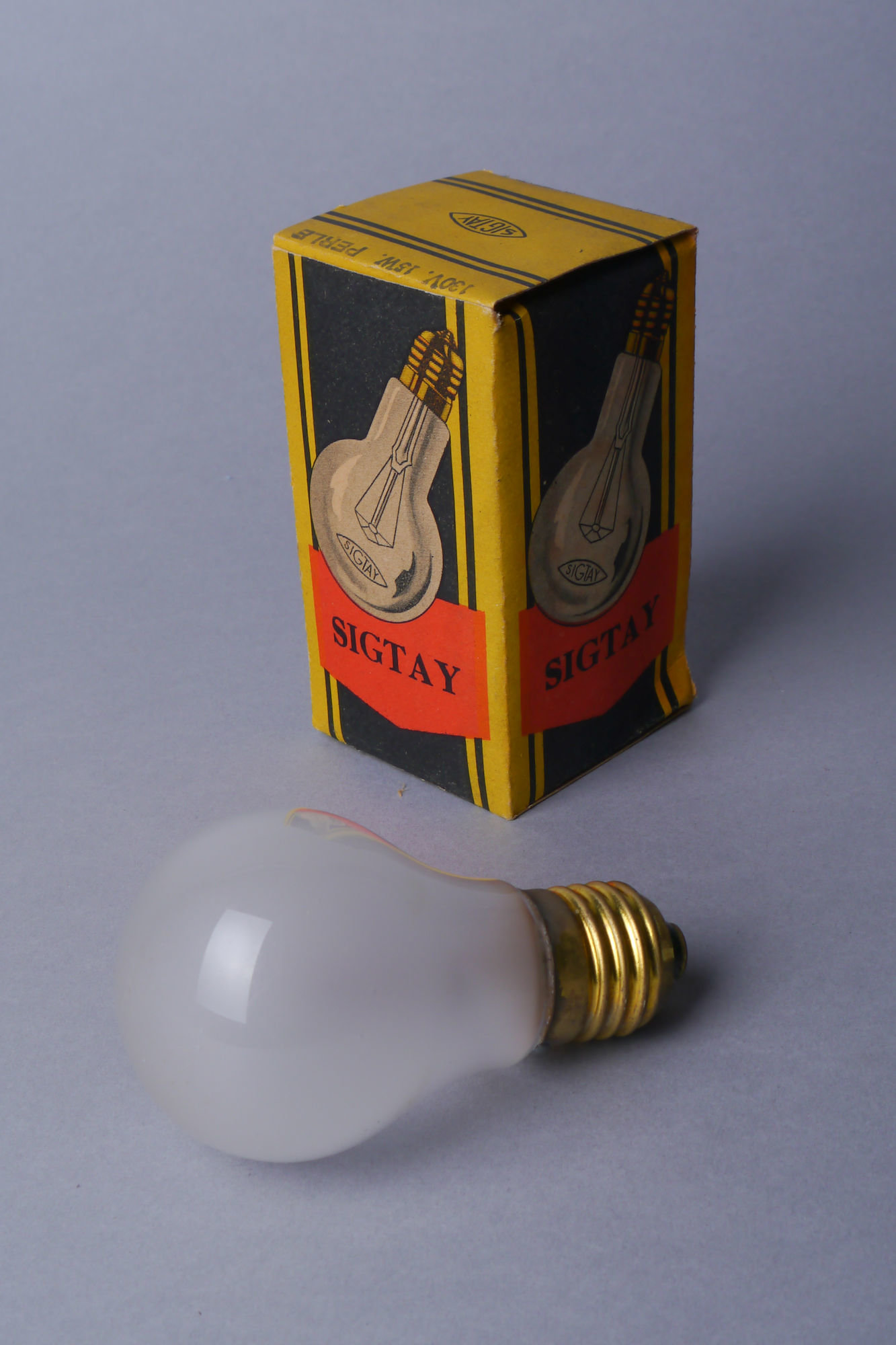 - opschriften: SIGTAY / 130V. 15W. / PERLE