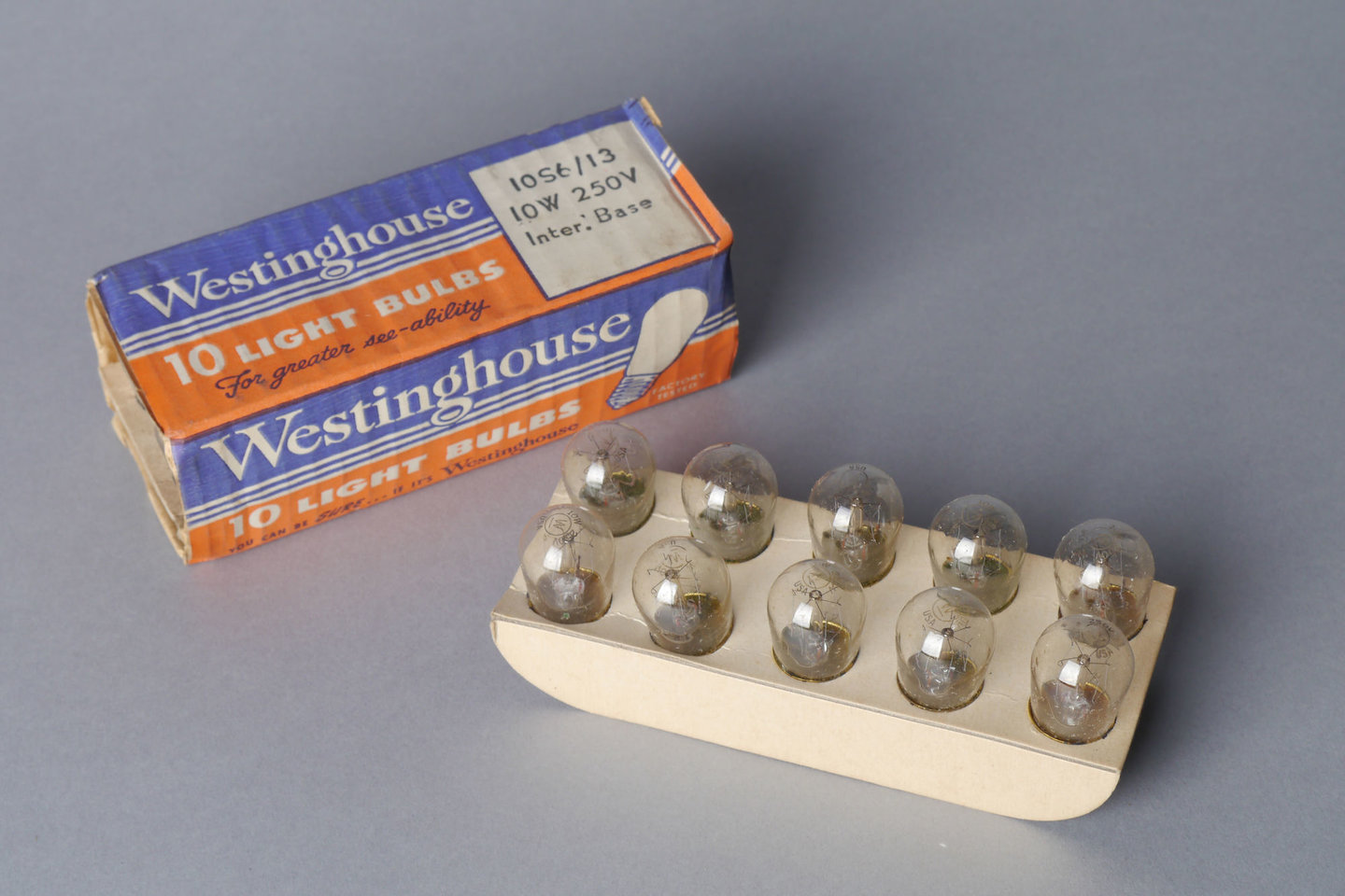 - opschriften: Westinghouse 10S6/13 / 10 W 250 V / Inter. Base / 10 LIGHT BULBS / For greater see-ability // Westinghouse / 10 LIGHT BULBS / YOU CAN BE sure... IF IT'S Westinghouse / FACTORY / TESTED