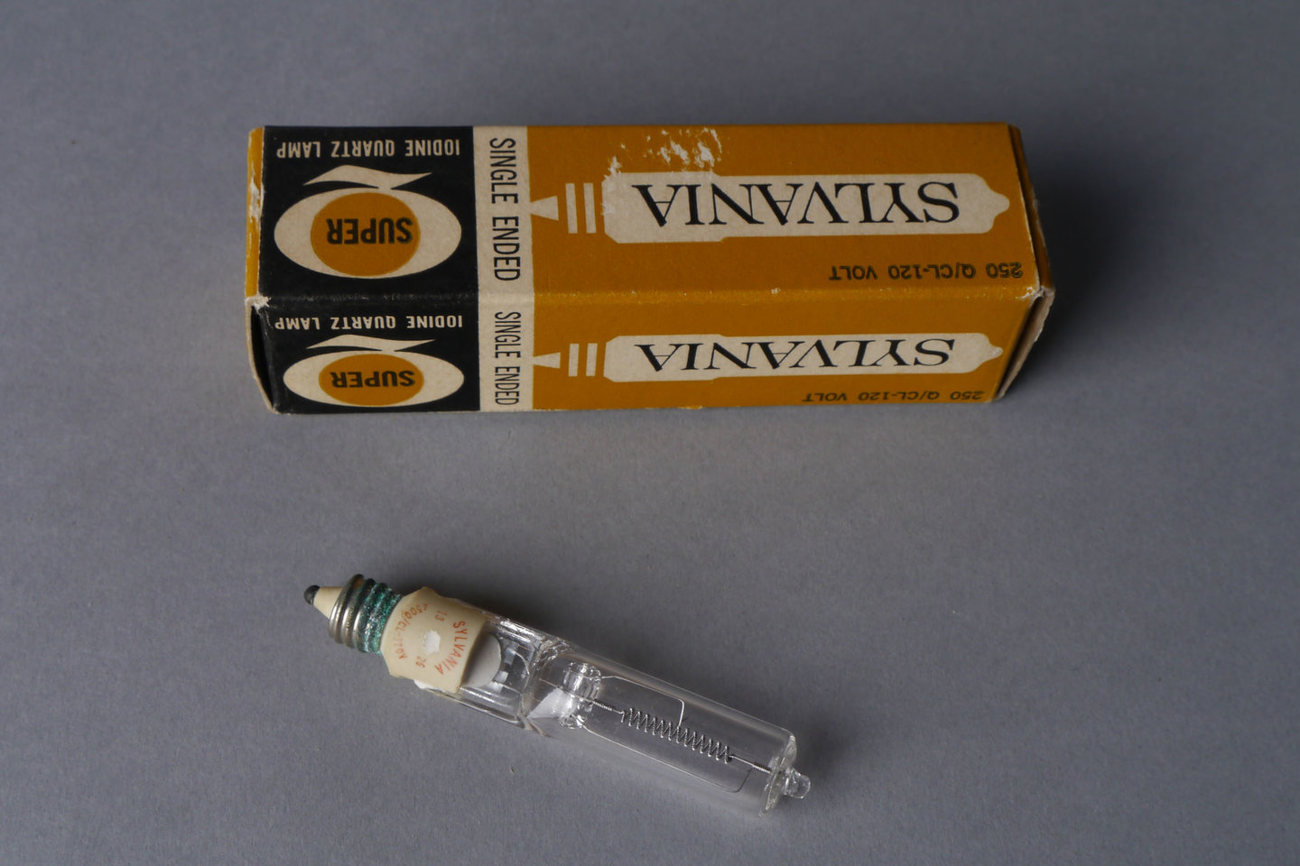 - opschriften: 250 Q/CL-120 VOLT / SYLVANIA / SINGLE ENDED / SUPER / IODINE QUARTZ LAMP