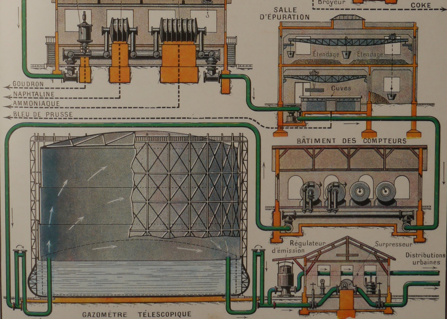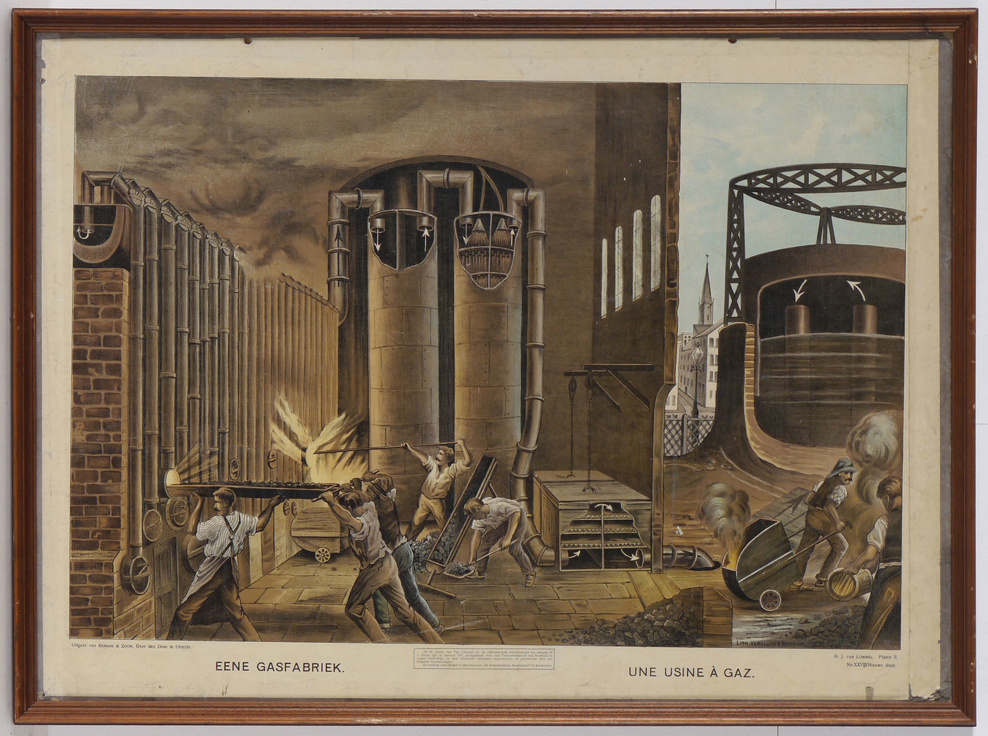 Didactische schoolplaat over de werking van een gasfabriek, 1921. Collectie Industriemuseum, AF00048.