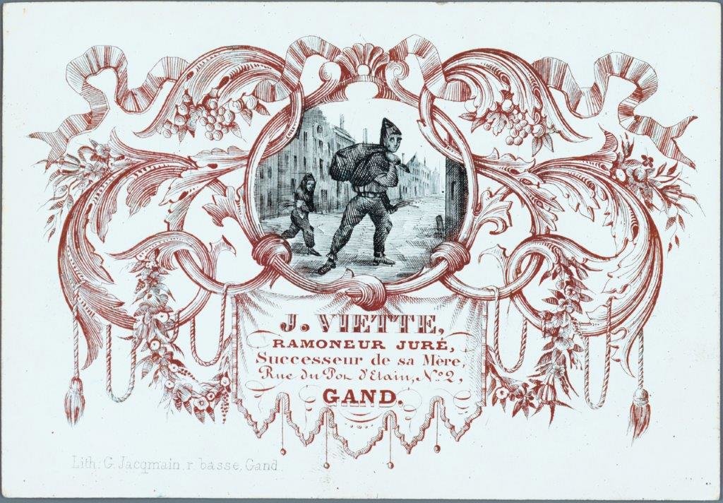 Meester-schoorsteenvegers verdelen porseleinkaarten met hun adresgegevens. De toenmalige visitekaartjes, zeg maar. Deze kaarten zien eruit als porselein door een behandeling met loodwit. Naast de adressen van Moret, Van Daele en Bauters vinden we ook een kaart van Viette. Een Gentse schoorsteenveger met een Italiaans klinkende familienaam. Verder onderzoek bij de Dienst Burgerzaken van de stad Gent toont aan dat de familie Viette afkomstig is uit Noord-Italië. In Piëmonte vinden we eveneens een aantal jongelingen met de familienaam Viette terug. Een aantal van hen kwam in Noord-Europa terecht en werkte als schoorsteenveger.