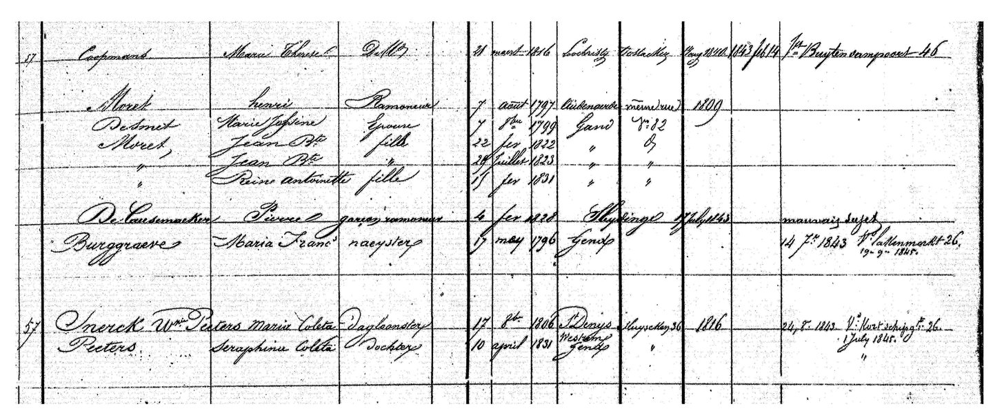 Uittreksel uit het bevolkingsregister van de Stad Gent, 1843. © Dienst Bevolking Stad Gent