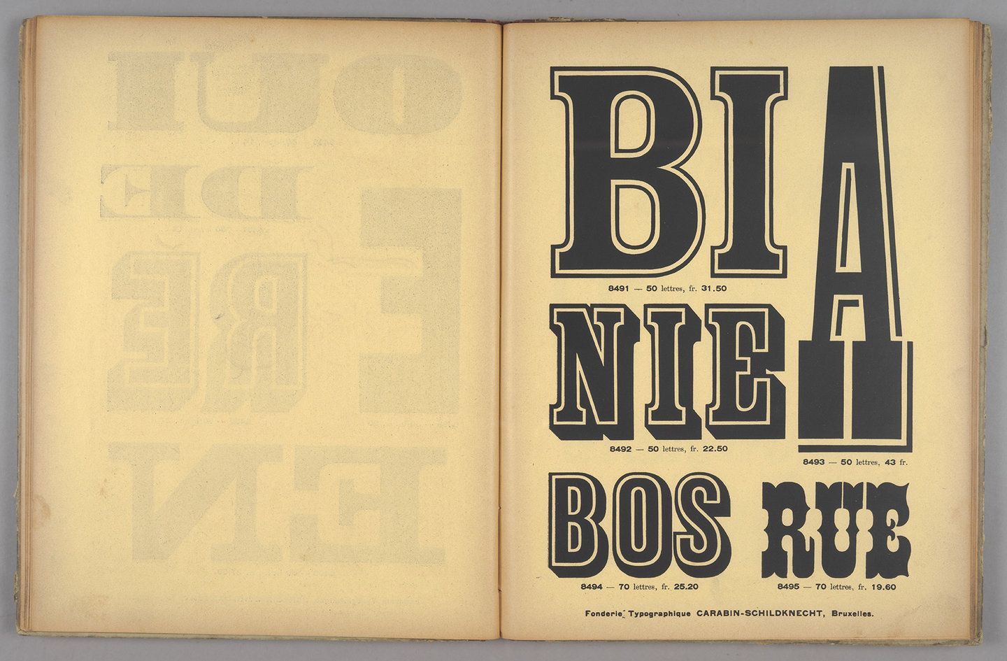 Lettercatalogus Caractères et Cadres pour affiches, Fonderie typographique Carabin-Schildknecht, 1903.