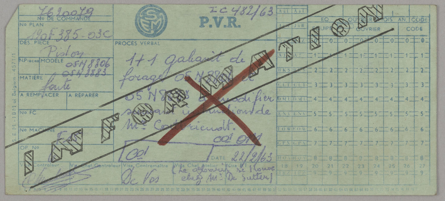 #Gent #metaal #3de kwart 20ste eeuw #machinebouw #SEM (Société d'Electricité et de Mécanique) #controlekaart #Ateliers de Constructions Électriques de Charleroi (ACEC)