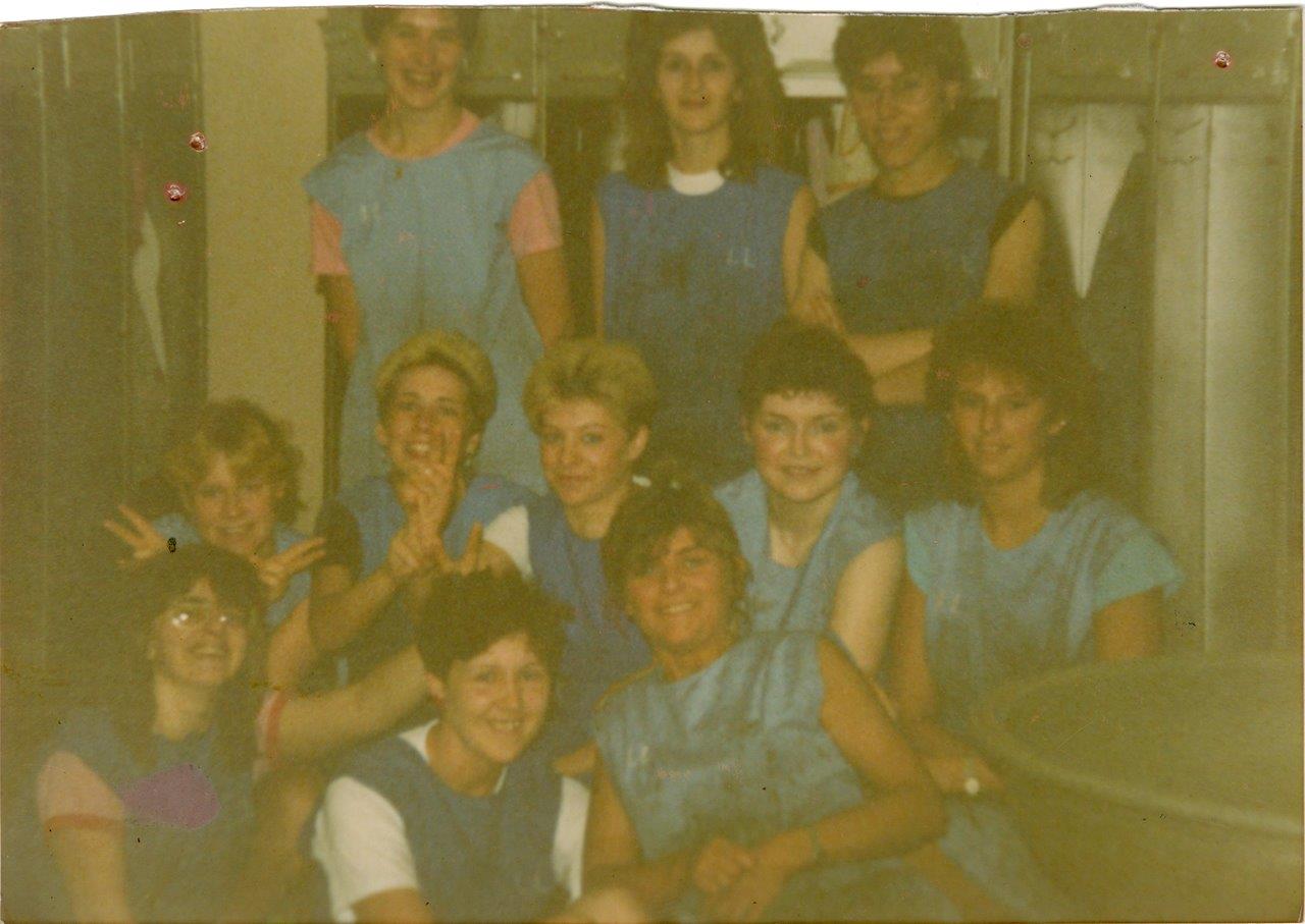 Conny (onderste rij in het midden) met collega’s in vlasspinnerij Lys-Liève nv.