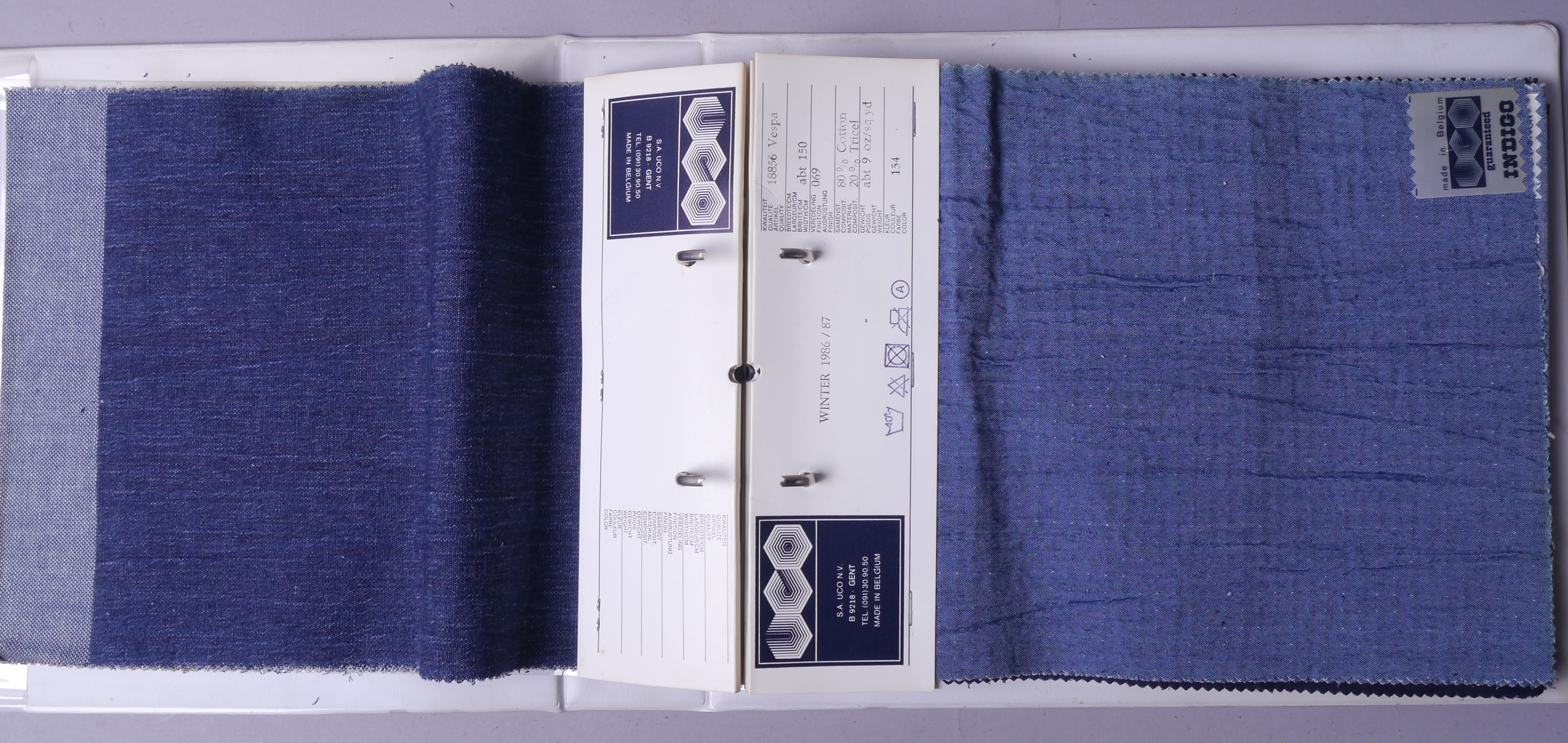 Staalboek met textielstalen van UCO Sportswear, 1986-1987.
