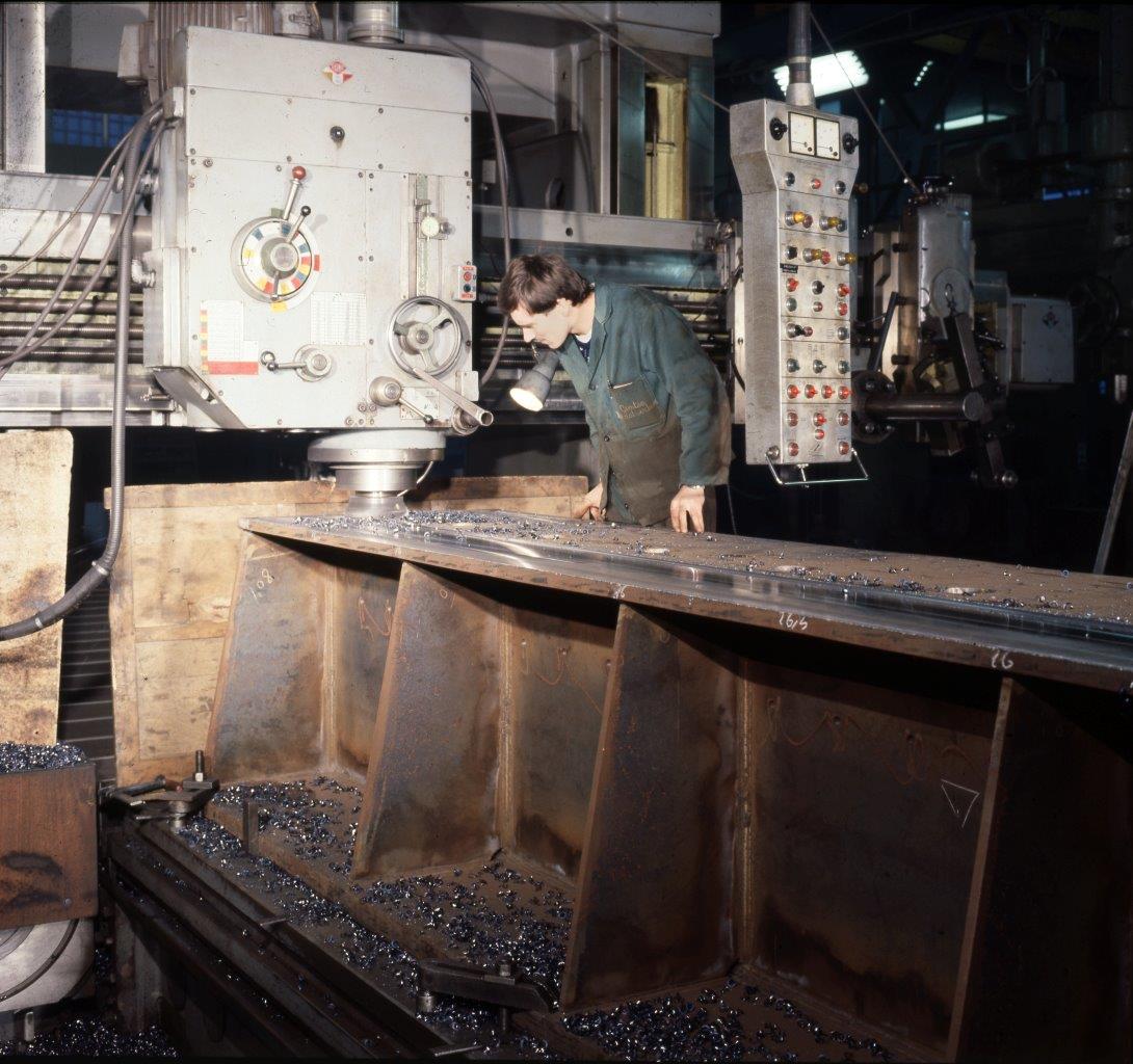 Portaalfreesmachine in de machinewerkplaats van Gentse Metaalwerken in Gent, einde 20e eeuw. F10200-019 - Collectie Industriemuseum