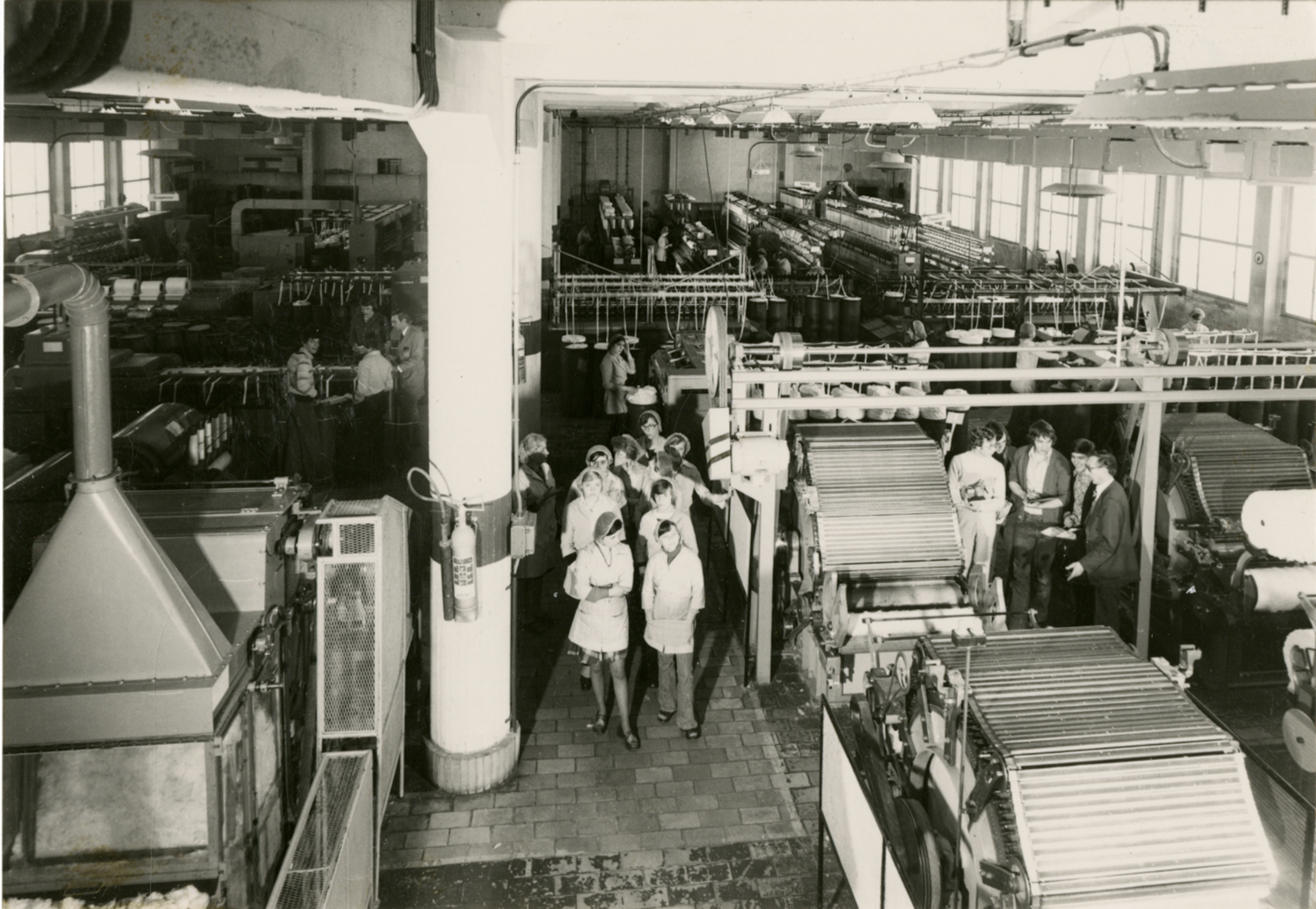 Spinnerijafdeling van het Stedelijk Textielinstituut Henri Story in Gent, ca. 1970.