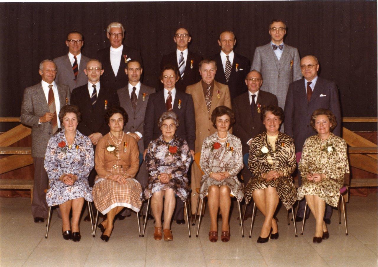 Groepsfoto van gedecoreerde UCO-werknemers met Lydie Thienpont (onderste rij, tweede van rechts).
