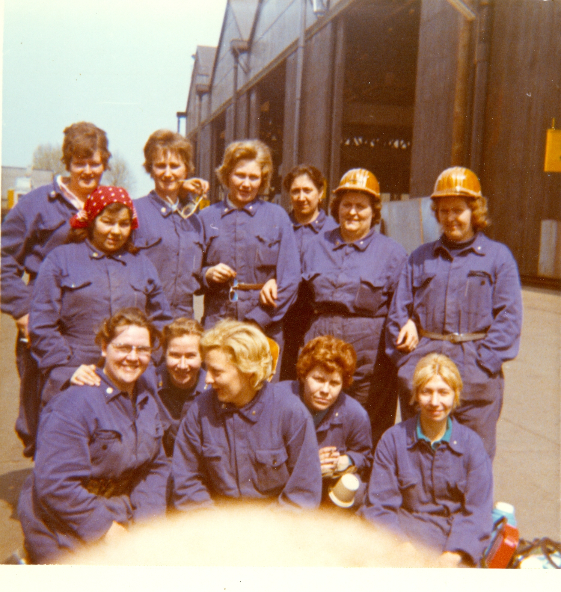 Groepsfoto van vrouwen die als lasser aan de slag zijn bij Cockerill Yards, jaren 1970. Collectie Heemkundige Kring Hobeuchen 1135