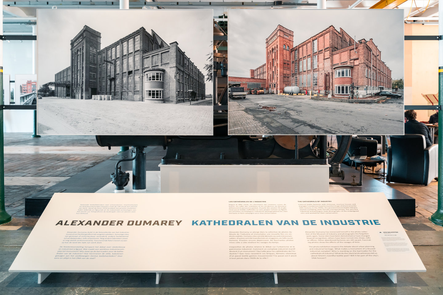 Van 24 april tot 26 september 2021 loopt in het Industriemuseum de foto-expo 'Alexander Dumarey. Kathedralen van de industrie'. De rijke fotocollectie van het Industriemuseum vormt de basis voor deze expo. Fotograaf Alexander Dumarey gaat ermee in dialoog: hij duikt in de collectie, zoekt vele van de plekken opnieuw op en herfotografeert de Gentse textielfabrieken van weleer.