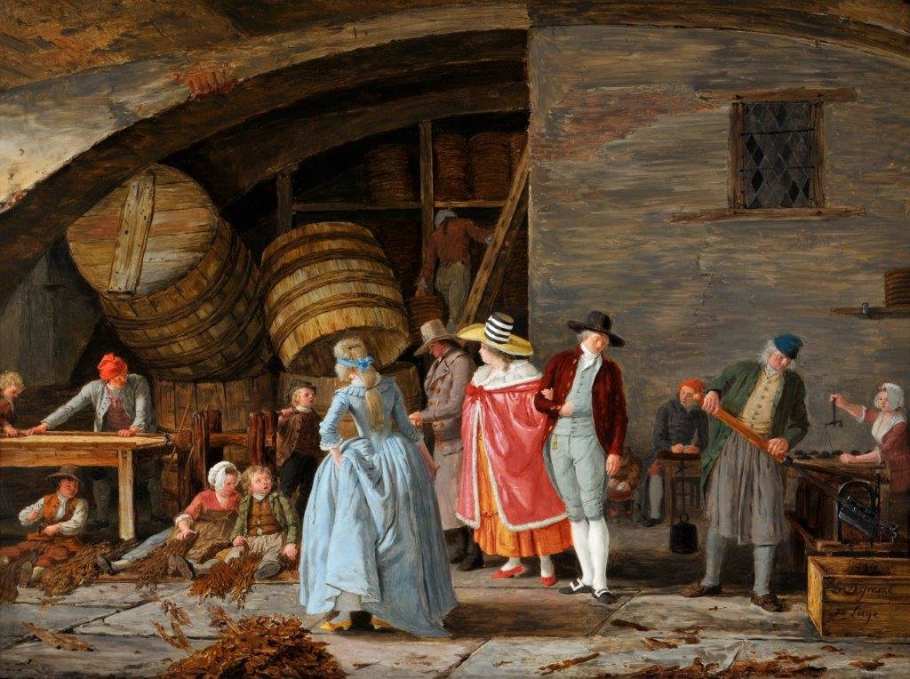 Schilderij Visite à la manufacture de tabacs, Léonard Defrance (1735-1805), © La Boverie, Luik