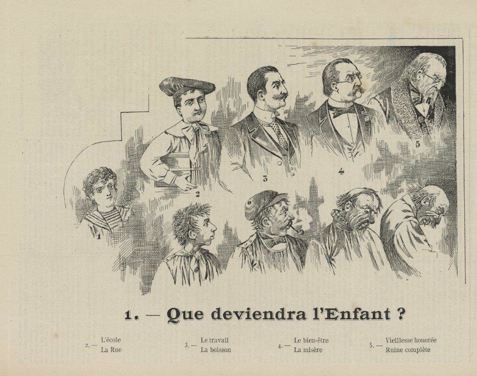 Spotprent ‘Que devriendra l’enfant?’, Le Bien Social, 1899, © Universiteitsbibliotheek Gent
