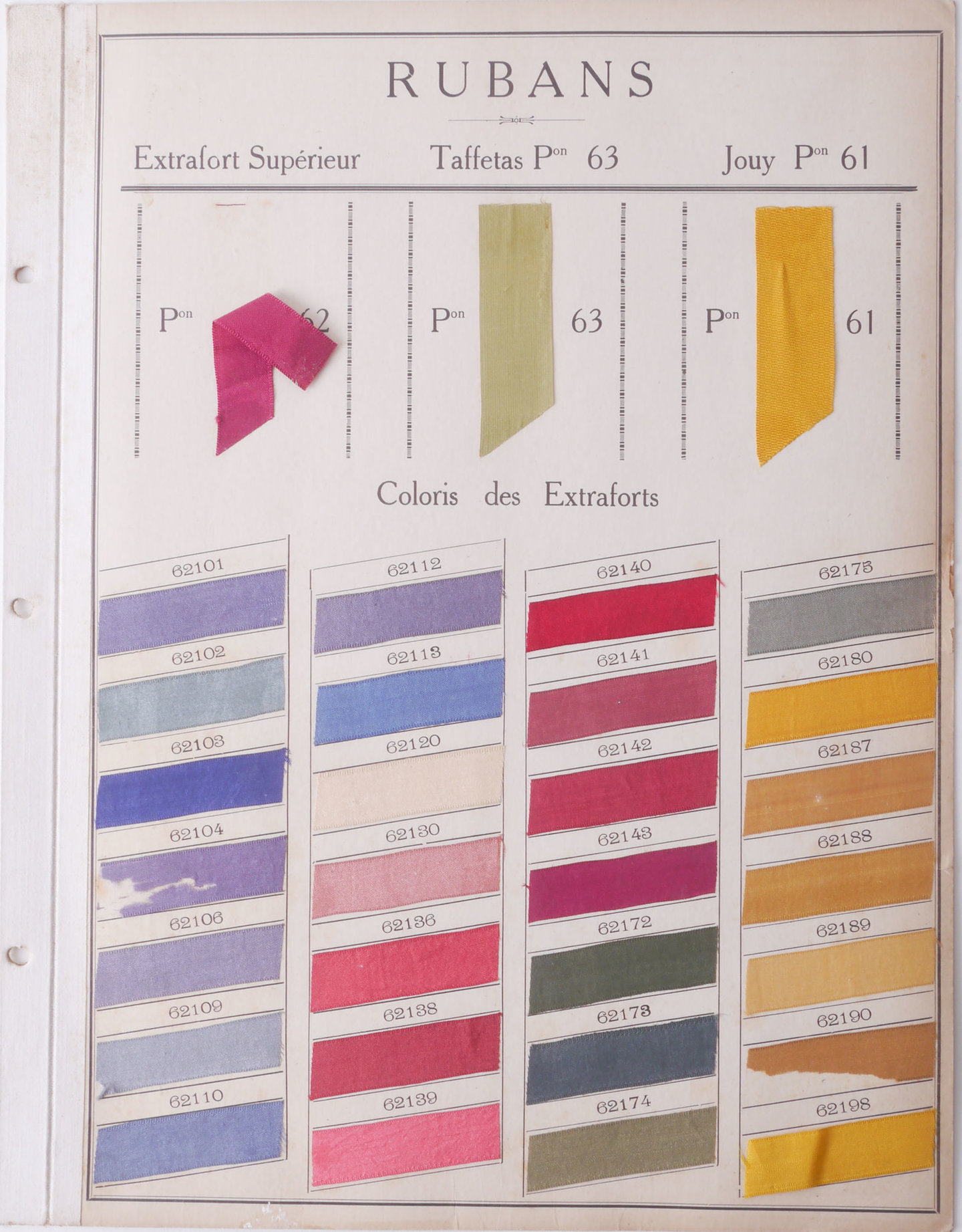 - opschriften: Rubans // Extrafort Supérieur / Pon 62 // Taffetas Pon 63 / Jouy Pon 61 // Coloris ...
