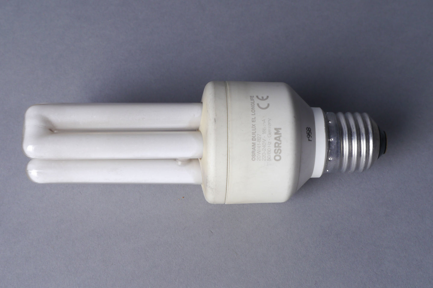 - opschriften: OSRAM DULUX EL LONGLIFE / 20W/41-827 / 220-240V 165mA / 50/60Hz Germany / OSRAM