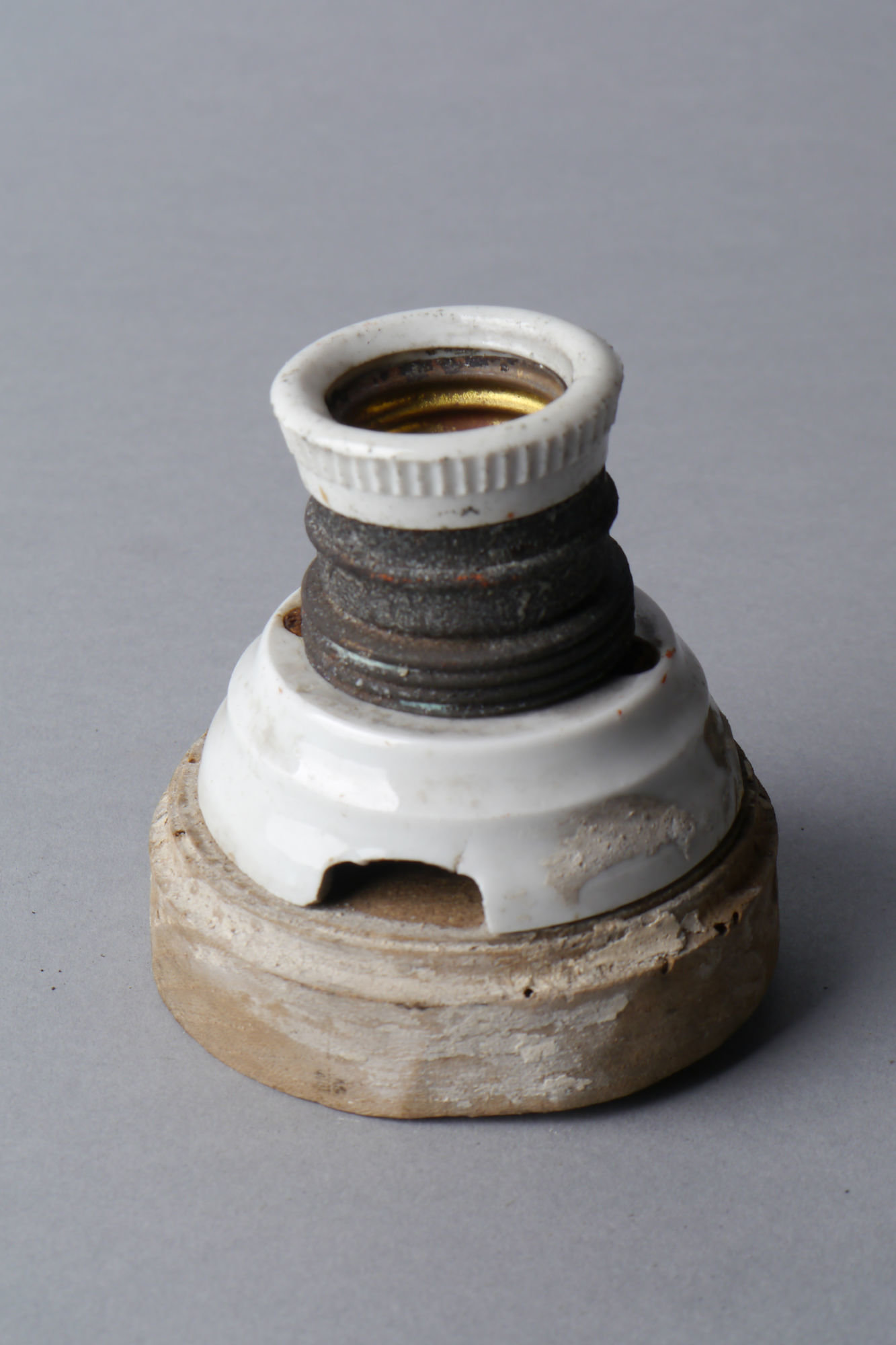 #energie #elektriciteit #verlichting #elektrische verlichting #porselein #systeemonderdelen #hout #gele koperlegering
