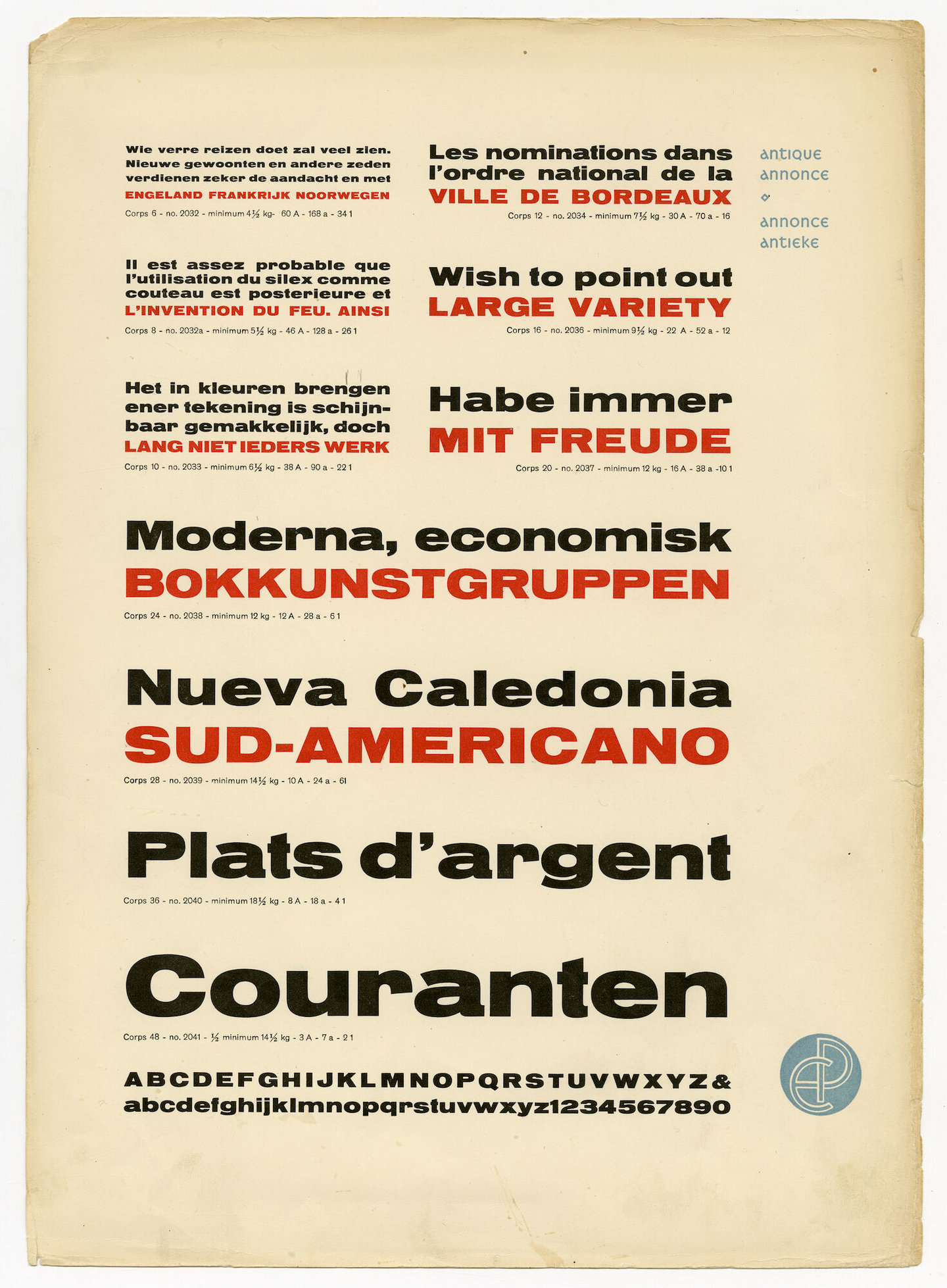 #papier #typografie #zetterij #drukkerij #midden 20ste eeuw #letterproef #Plantin Etablissements NV #lettergieterij