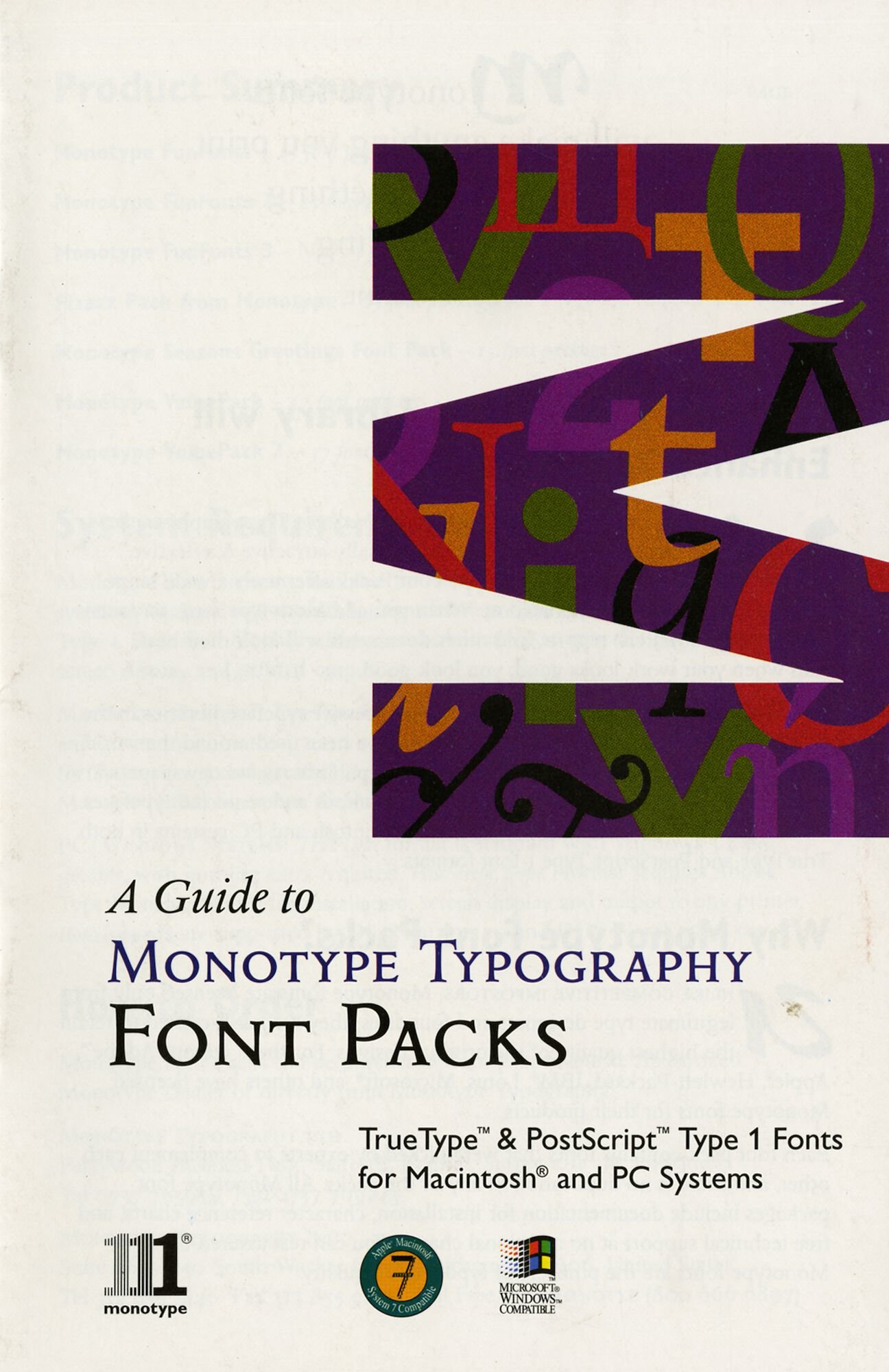 - opschriften: A guide to Monotype Typography Font Packs / TrueType & PostScript Type 1 Fonts / for Macintosh and PC Systems