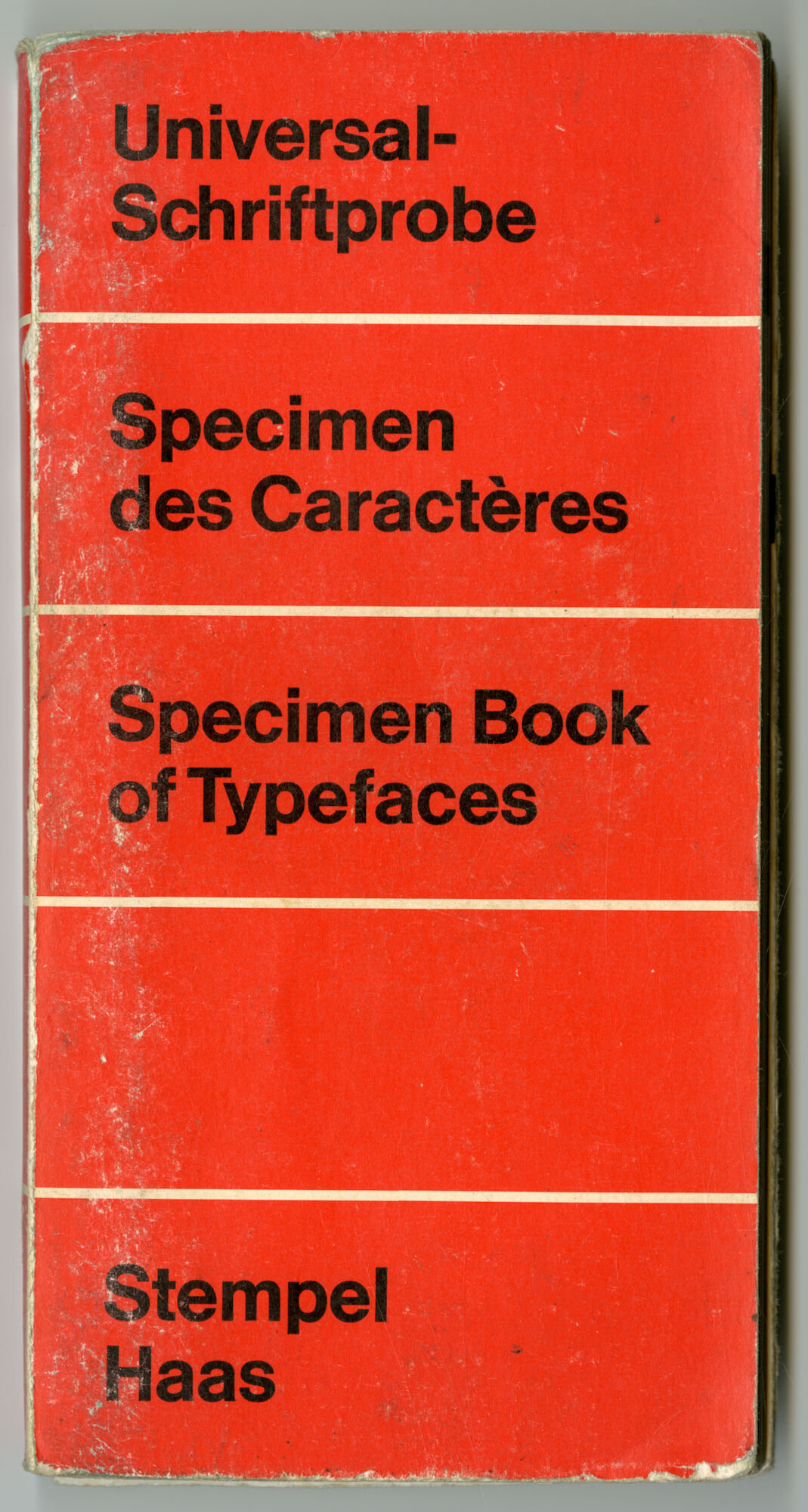 - opschriften: Universal-Schriftprobe / Specimen des Caractères / Specimen Book of Typefaces / Stempel Haas