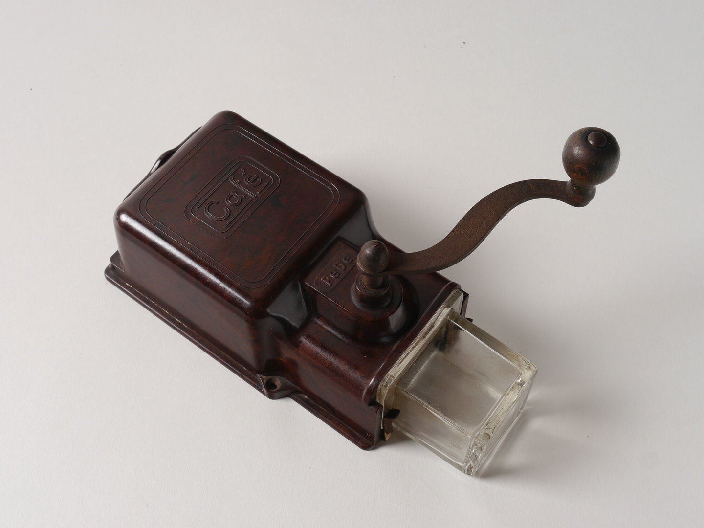#wonen #glas #metaal #bakeliet #hout #2de kwart 20ste eeuw #huisraad #keukengerei #Pe De #Dienes, Peter #koffiemolen