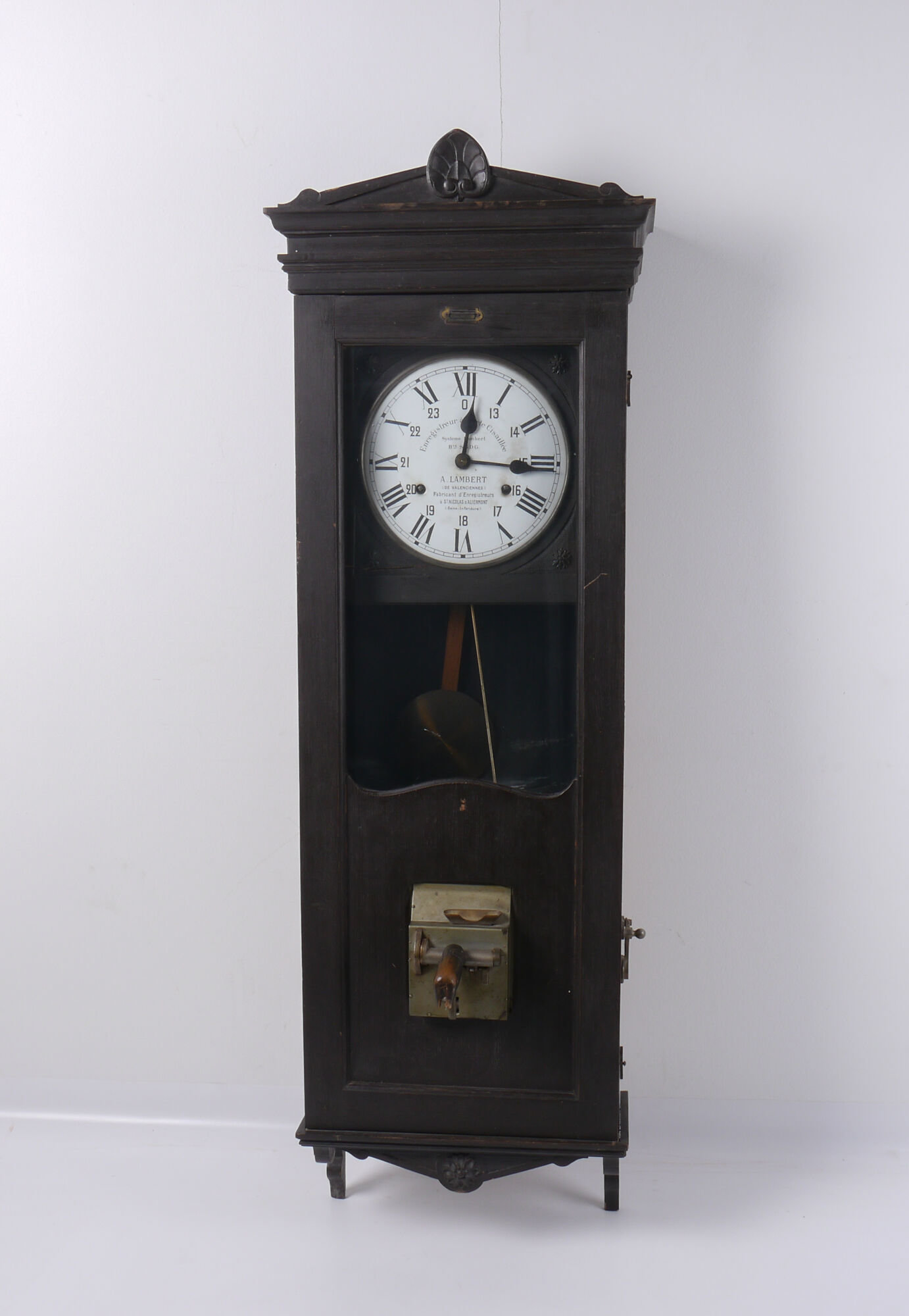 - opschriften: Enregistreur à Carte Cisaillée / Système Lambert / Bté S.G.D.G. / A.LAMBERT (DE VALENCIENNES) / Fabricant d'Enregistreurs / à St 'NICOLAS d'ALIERMONT/ Seine-Inférieure CONCESSIONAIRE pour la / BELGIQUE et la HOLLANDE / Jos DE RY / 24, Rue de l'alliance BR