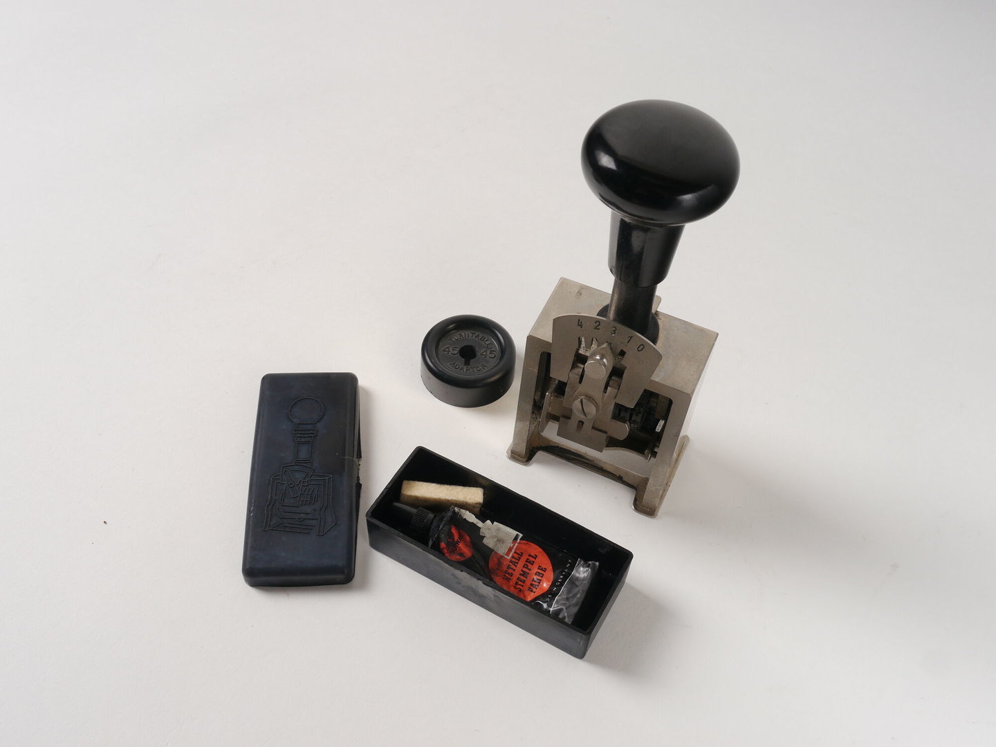 #metaal #bakeliet #2de kwart 20ste eeuw #informatie en communicatie #kantoorbenodigdheden #kantoor #Erfu #stempel