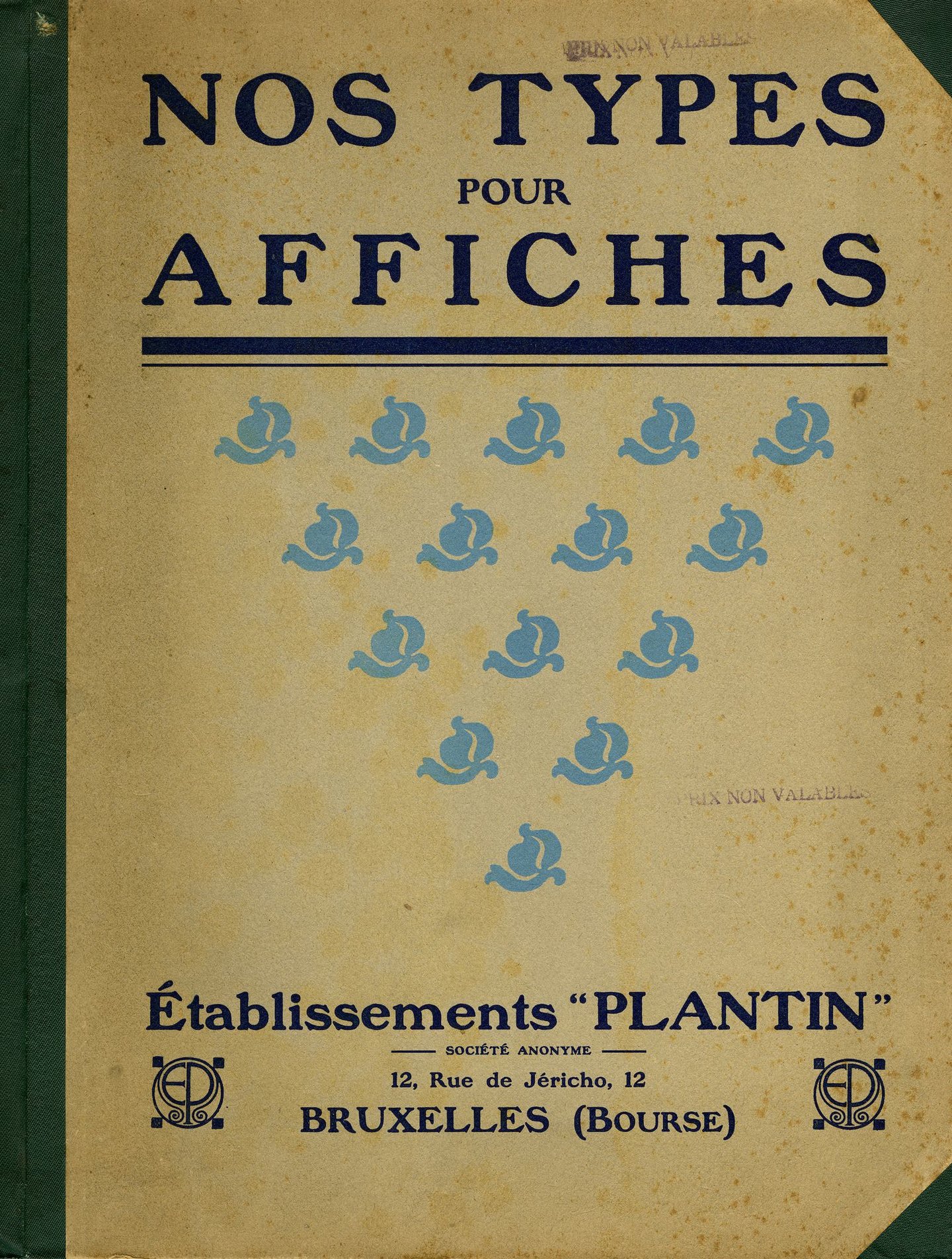 - opschriften: Nos types pour Affiches / Etablissements "Plantin" société Anonyme 12, Rue de Jéricho, 12, Bruxelles (Bourse)
