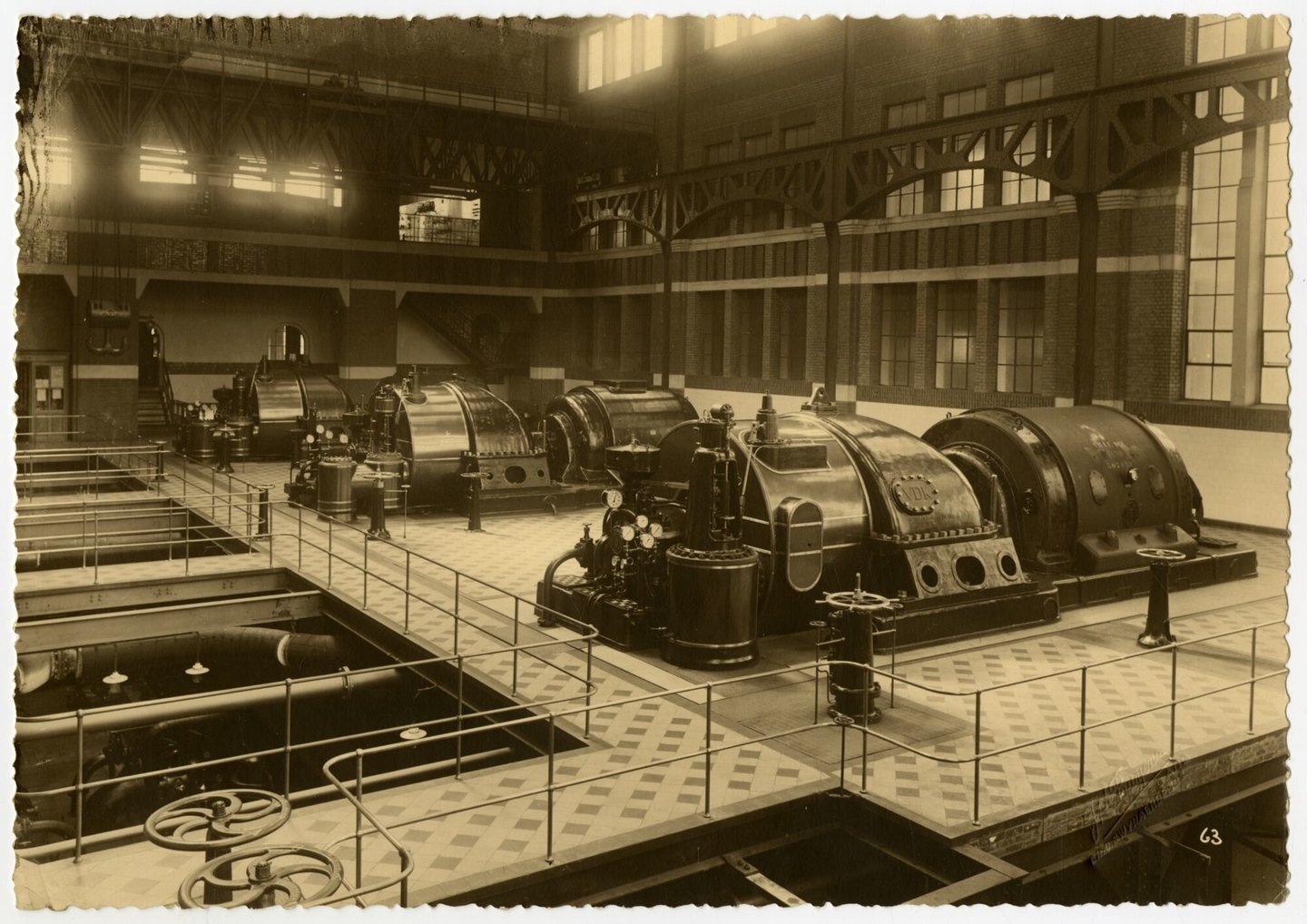 #Gent #energie #stoom #fotopapier #elektriciteit #2de kwart 20ste eeuw #Van den Kerchove Anciens Ateliers de Construction #Sluizeken - Tolhuis - Ham #ACEC #Elektriciteitscentrale Ham Gent #machinezaal #turbogenerator