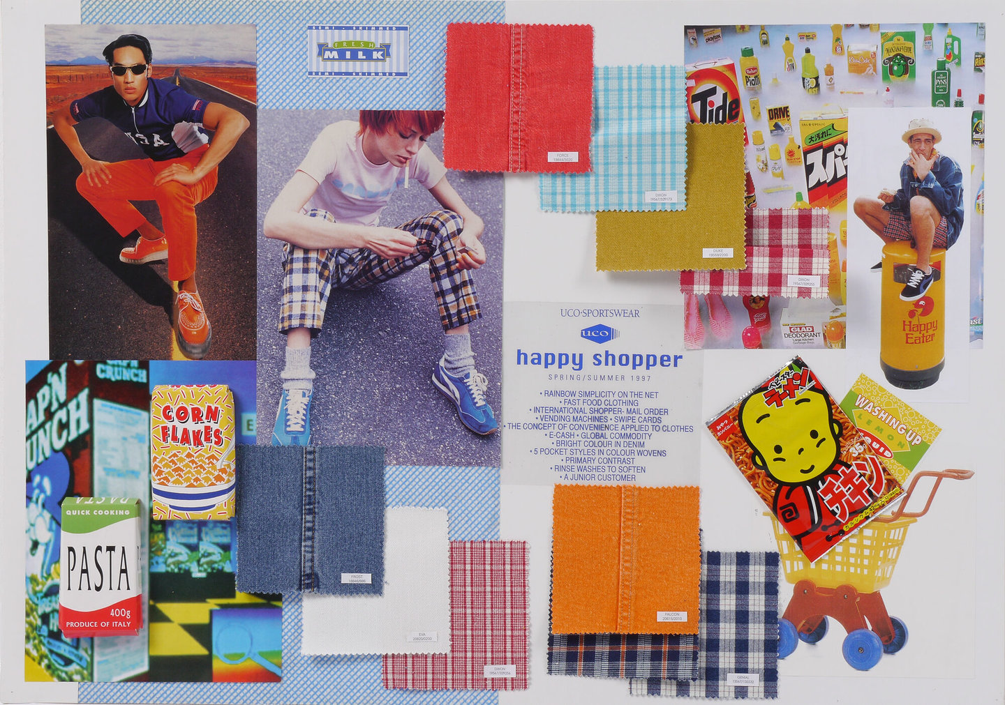 #metaal #kunststof #papier #textiel #einde 20ste eeuw #publiciteit #UCO Sportswear #textielstaal #moodboard