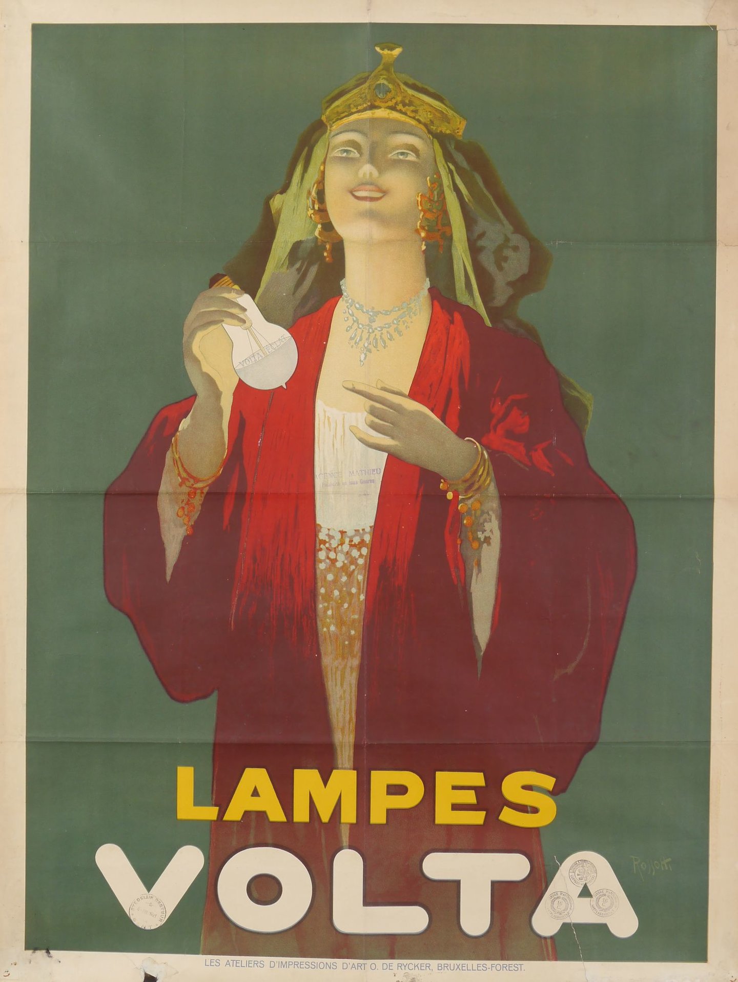 - opschriften: VOLTA ÉCLAT / LAMPES / VOLTA / LES ATELIERS D'IMPRESSIONS D'ART O. DE RYCKER, BRUXELLES-FOREST.