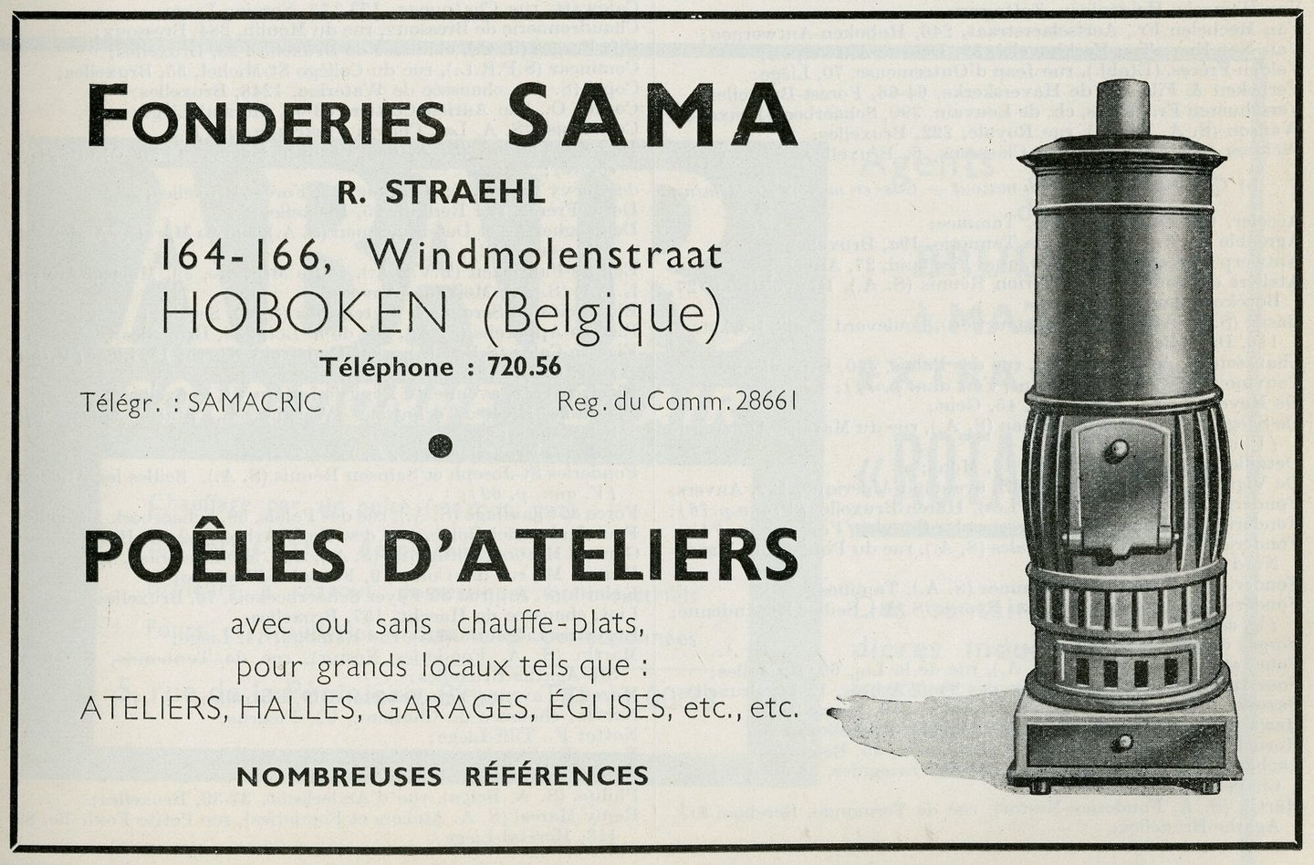 #publiciteit #informatie en communicatie #werken #3de kwart 20ste eeuw #kachel #verwarmingstoestellen #verwarmen #toestellen op kolen #arbeidsveiligheid en welzijn #Fonderies Sama