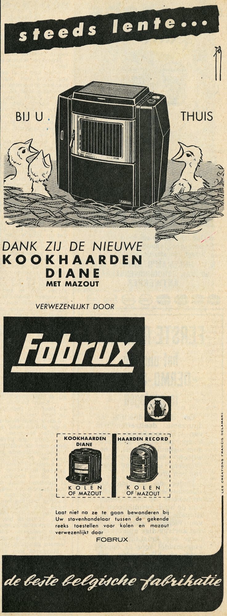 #wonen #publiciteit #informatie en communicatie #3de kwart 20ste eeuw #koken #kachel #verwarmingstoestellen #verwarmen #kooktoestellen #keuken #Les Fonderies Bruxelloises (Fobrux) #toestellen op vloeibare brandstoffen