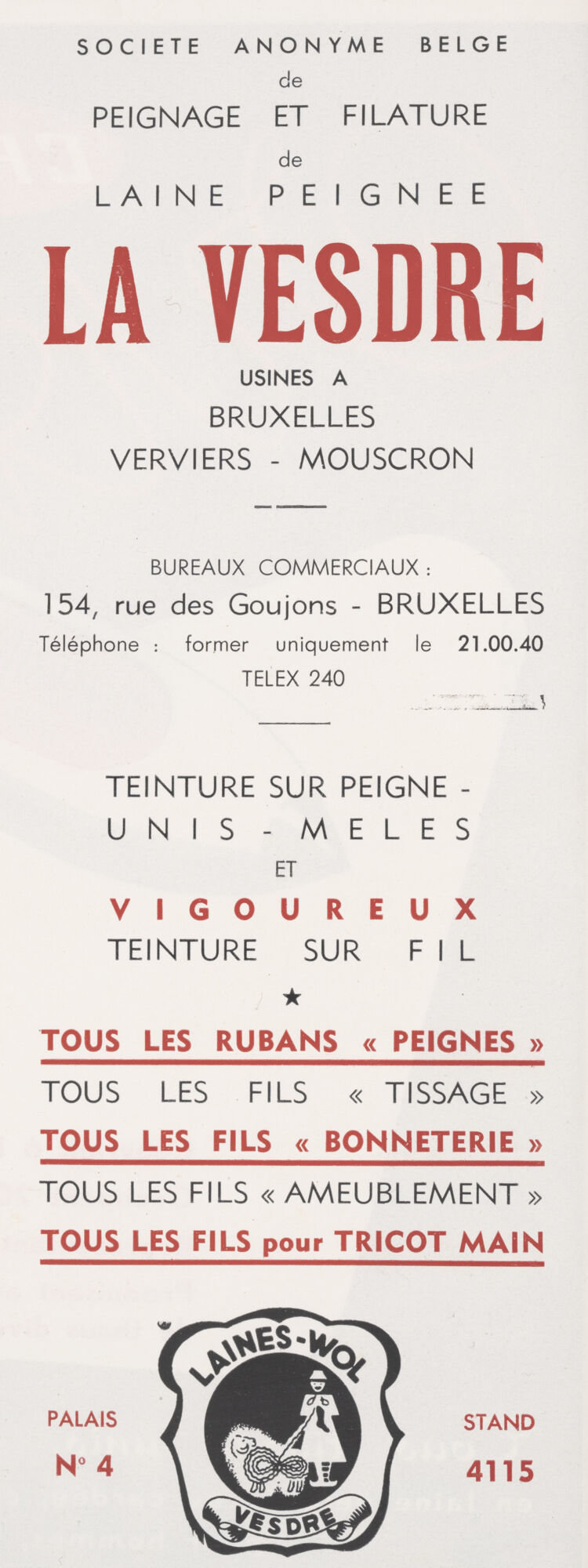 #textiel #publiciteit #informatie en communicatie #spinnerij #3de kwart 20ste eeuw #advertentie #ververij #La Vesdre nv