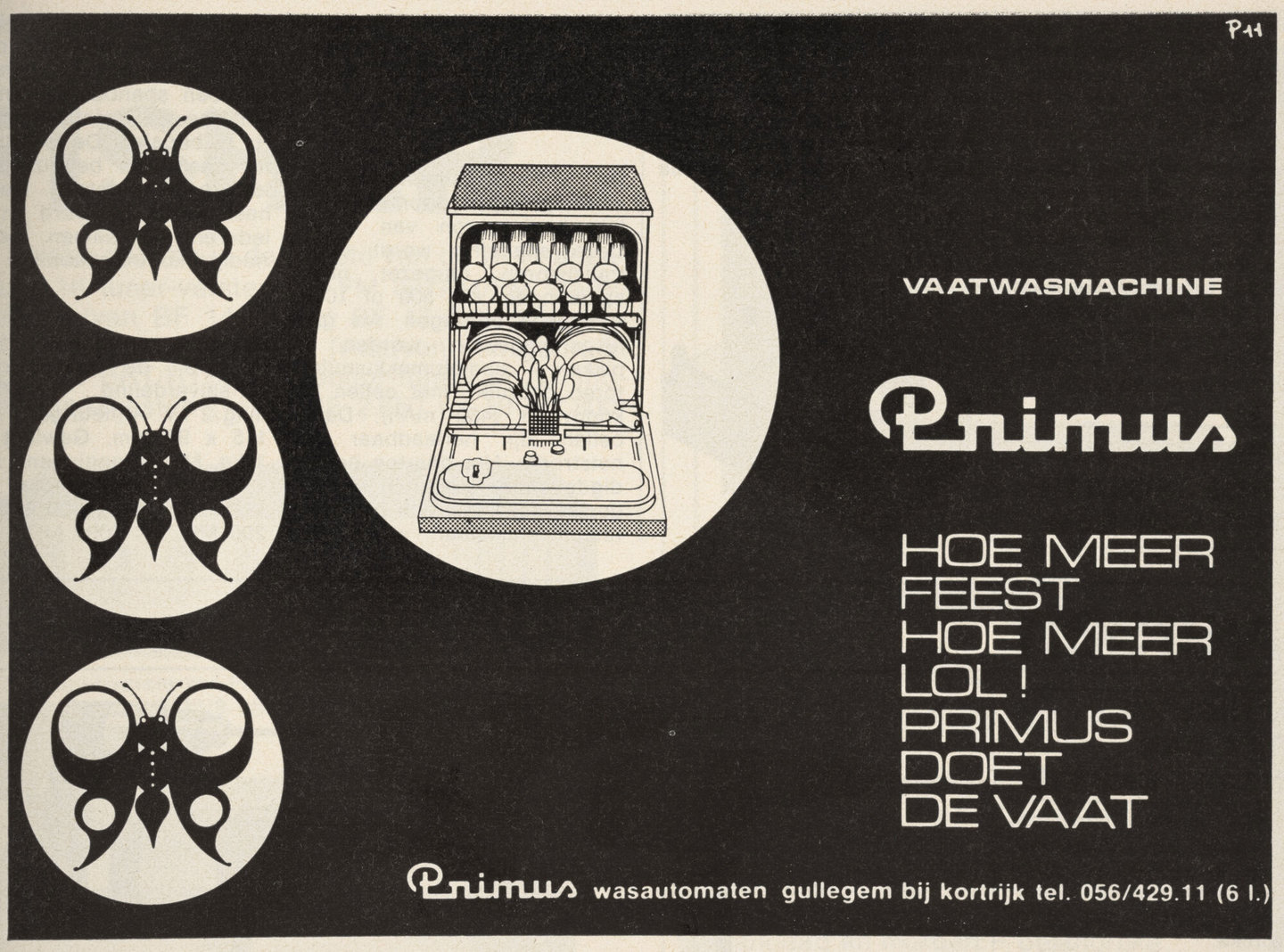 #wonen #publiciteit #informatie en communicatie #3de kwart 20ste eeuw #advertentie #schoonmaken #vaatwasmachine #Primus