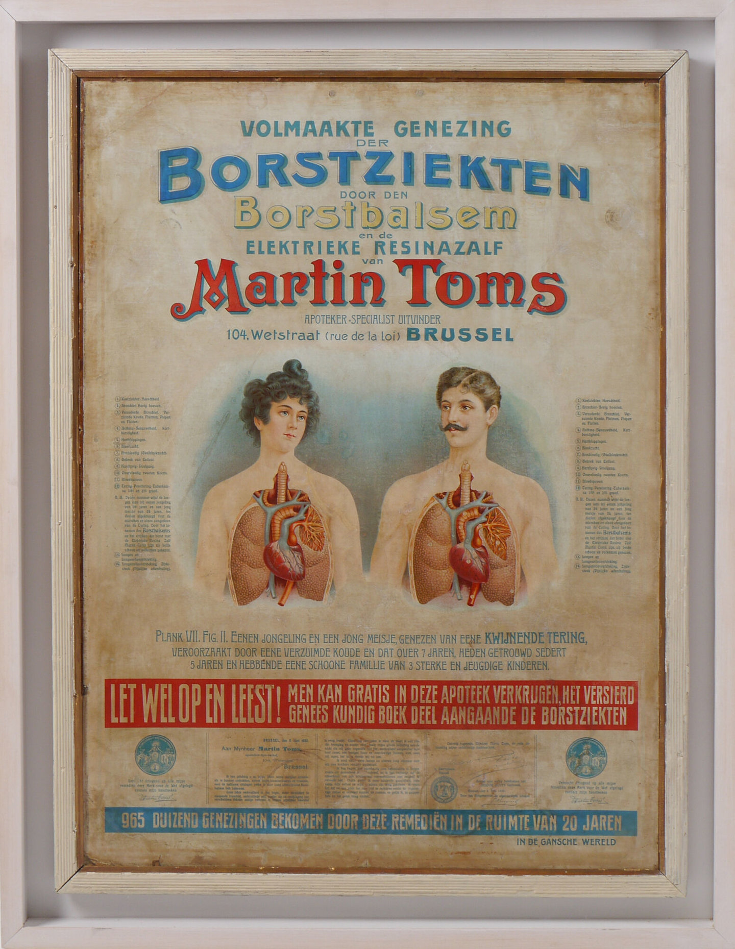 - opschriften: Volmaakte genezing /der / borstziekten / door den / borstbalsem / en de / elektrieke resinazalf / van / Martin Toms / apotheker - specialist uitvinder / 104, Wetstraat (rue de la Loi) Brussel / ...
