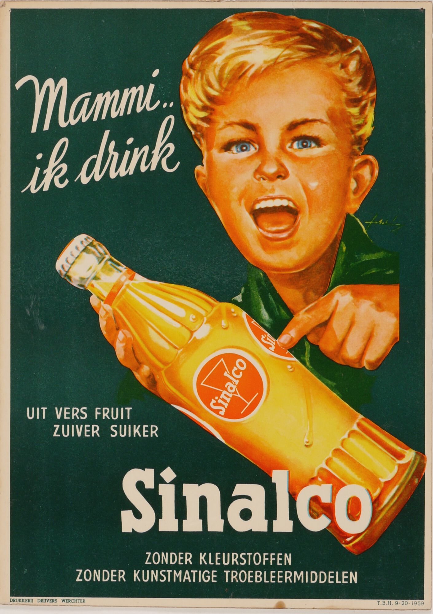 #karton #publiciteit #informatie en communicatie #3de kwart 20ste eeuw #voeding #uithangbord #dranken #limonade #kartonborden #Drijvers #Sinalco
