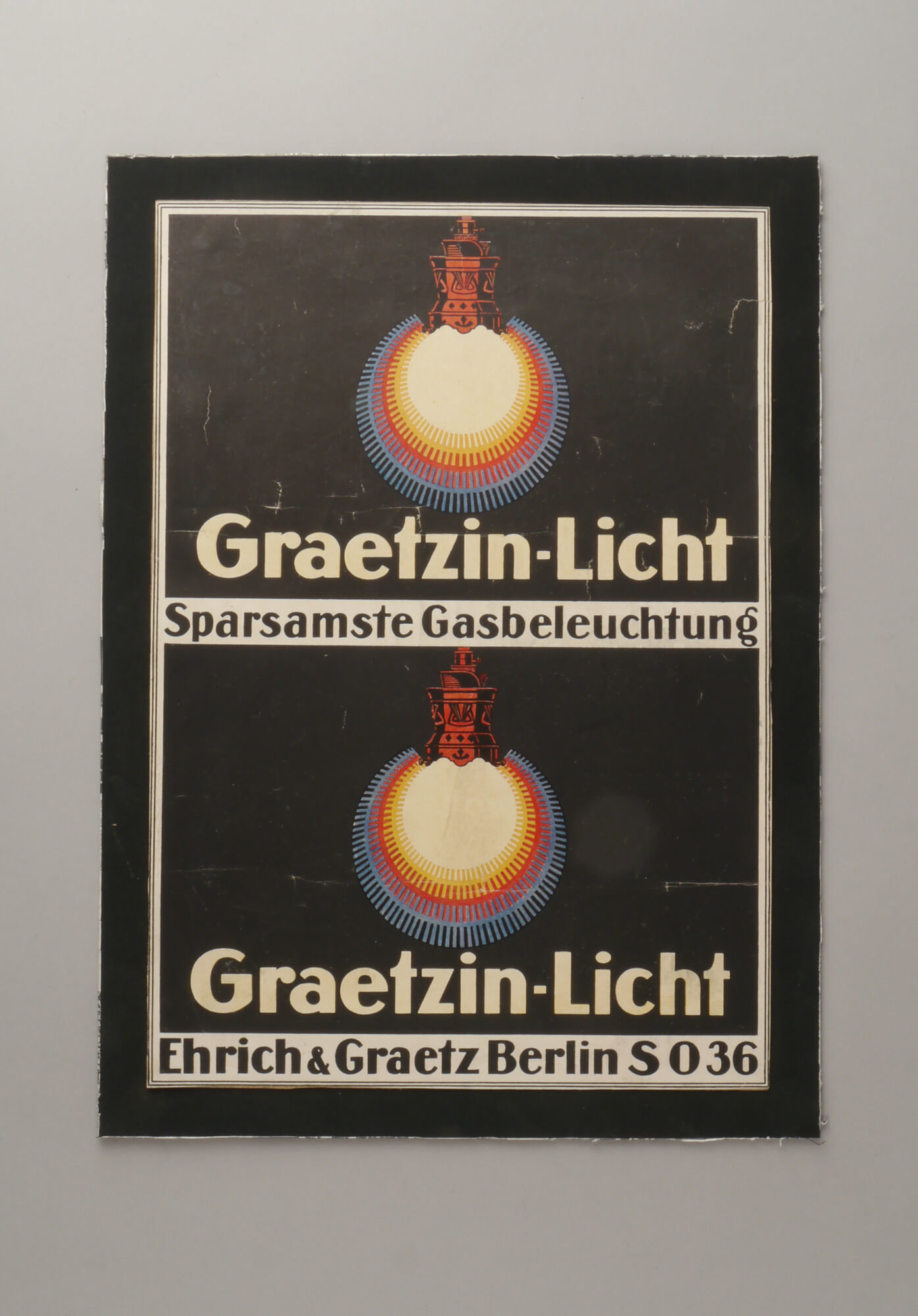 - opschriften: Graetzin-Licht / Sparsamste Gasbeleuchtung / Graetzin-Licht / Ehrich & Graetz Berlin SO36