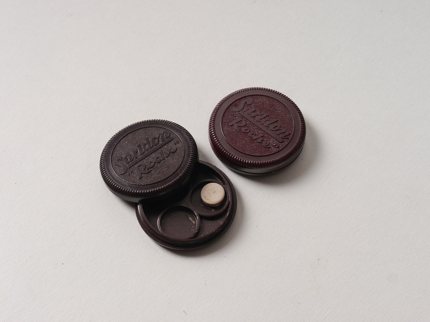 #wonen #papier #bakeliet #2de kwart 20ste eeuw #verzorgen #productverpakkingen #pillendoos #Roche