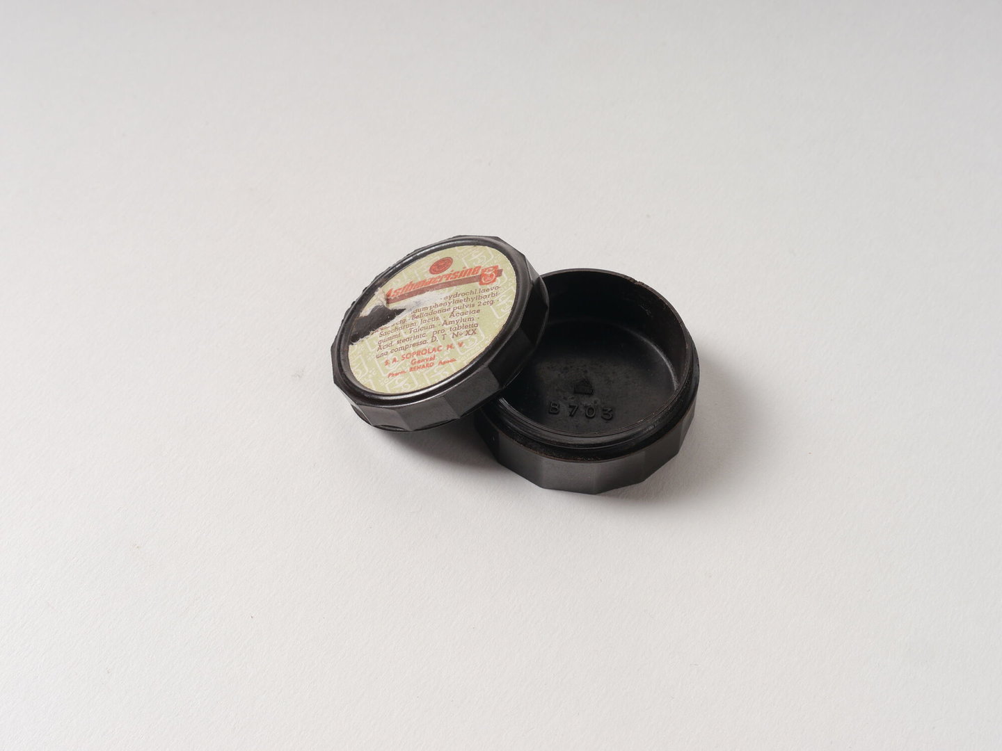 #wonen #bakeliet #2de kwart 20ste eeuw #verzorgen #productverpakkingen #Soprolac #pillendoos