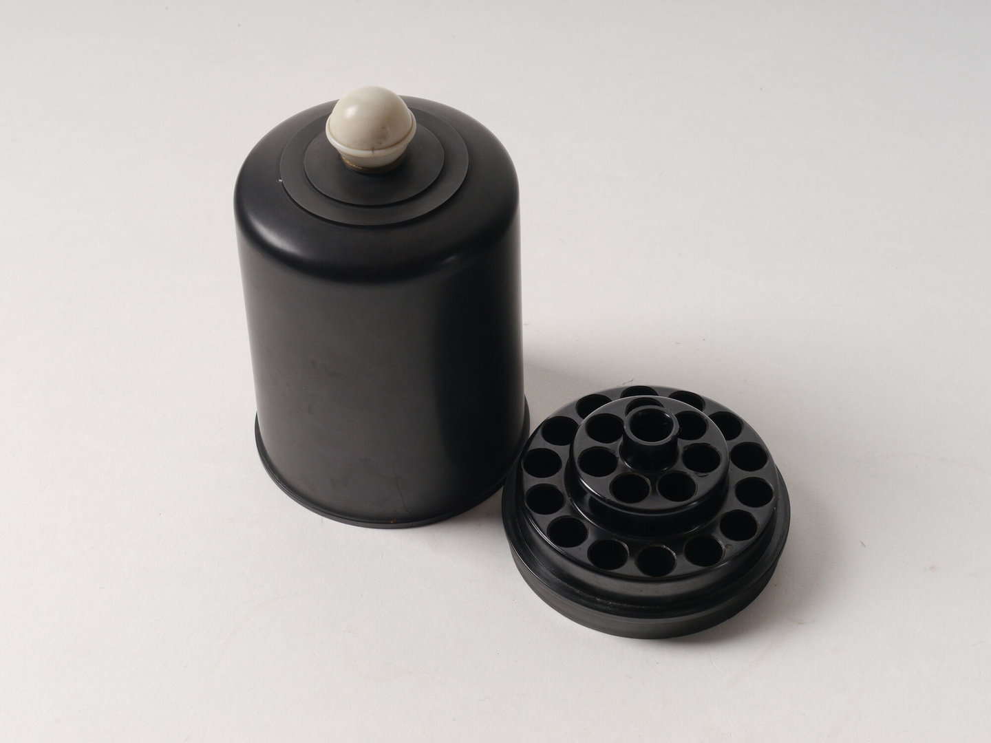 Ronde sigarettendoos van het merk Vynckier met afneembaar klokvormig deksel