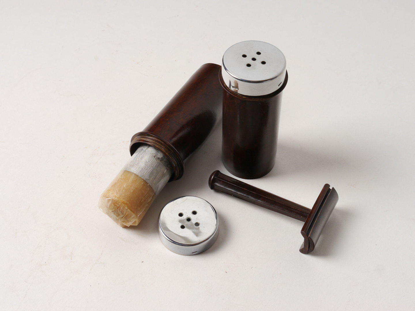 #wonen #bakeliet #2de kwart 20ste eeuw #kunstleer #verzorgen #scheergerei #scheermes