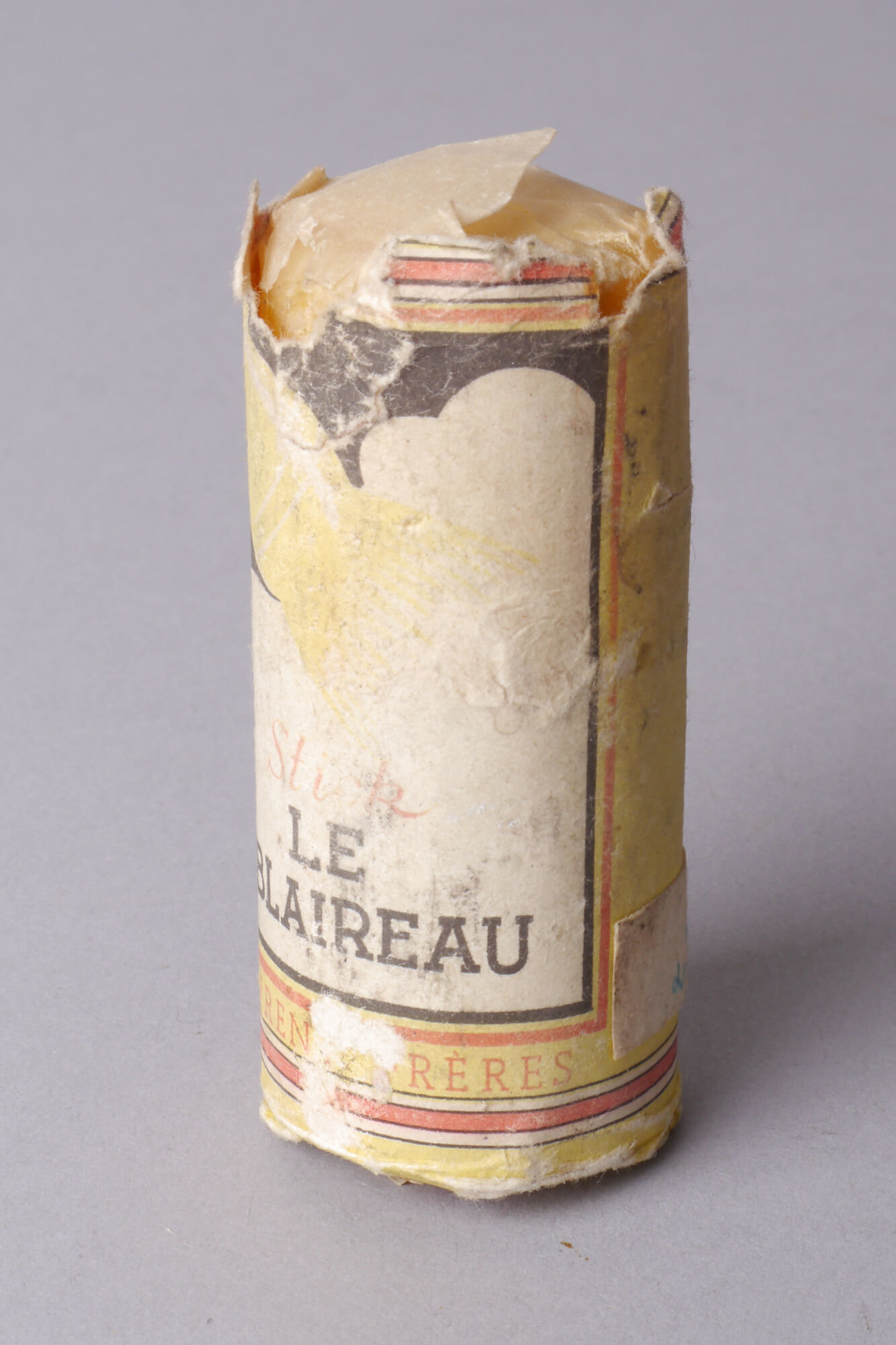 - opschriften: Stick / LE / BLAIREAU / LAURENT FRÈRES // Shaving Stick / LE BLAIREAU / geeft een overvloed van dik / schuim dat niet opdroogt. / Speciaal aanbevolen voor een zwaren baard en gevoelige huid. / LA FORMULE DU / Docteur Williams / 52 GR. A.G.