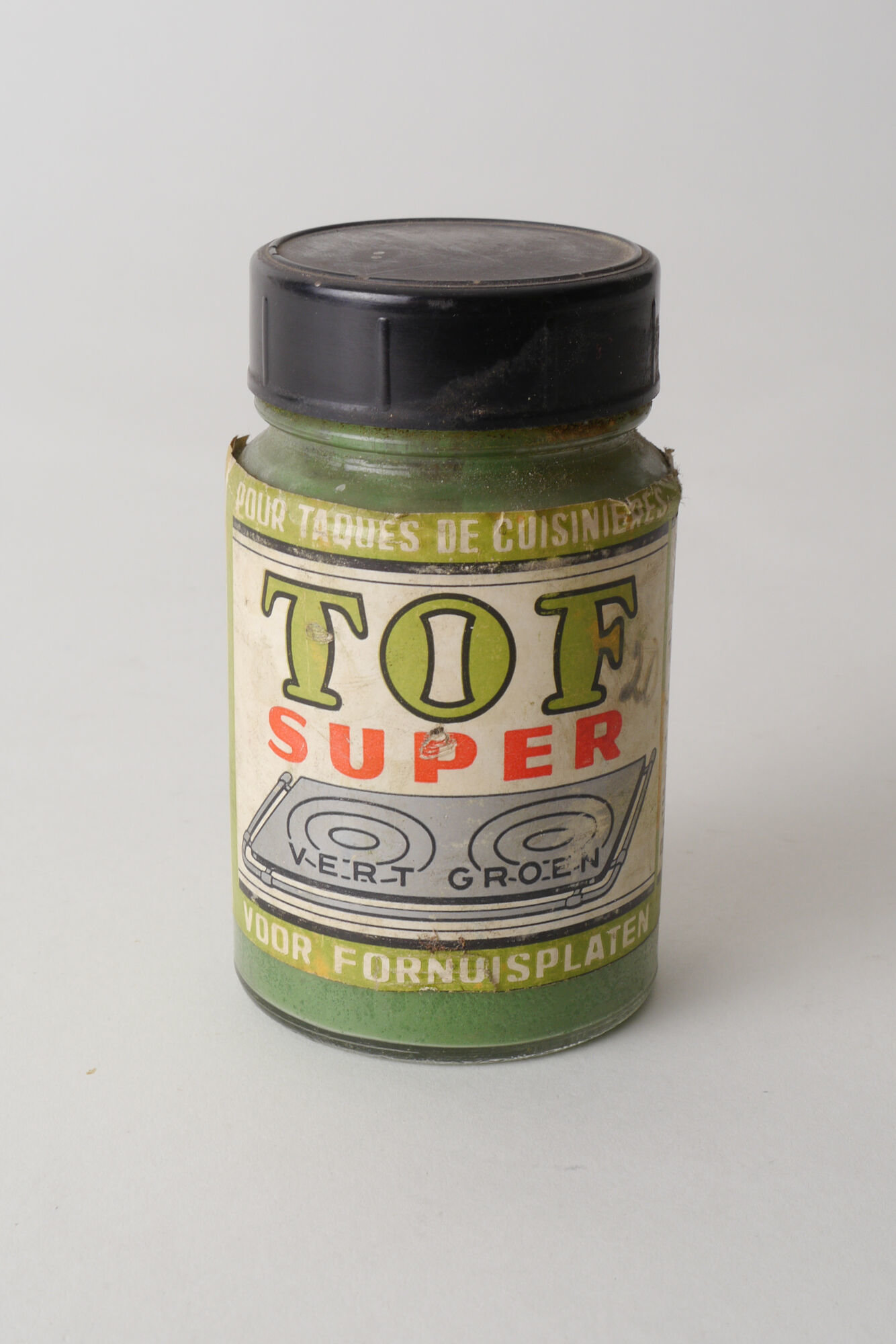 - opschriften: TOF / SUPER / VERT - GROEN / VOOR FORNUISPLATEN / Geeft een nikkelglans