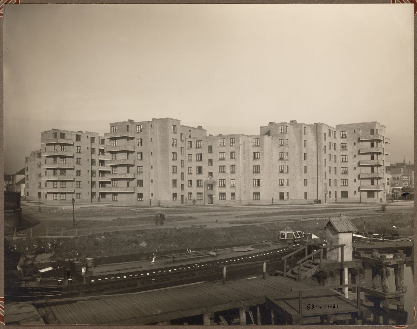 #wonen #huisvesting #Gent #fotopapier #2de kwart 20ste eeuw #reclamebord #lantaarnpaal #Dampoort #Serck nv #huis #sociale woning #boot #Scheldeoord #De Taeye, Paul